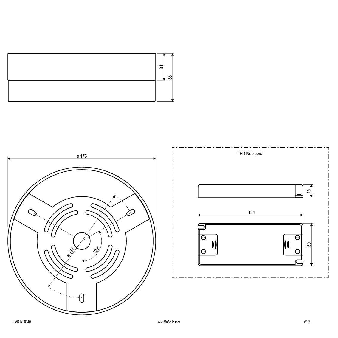 | Bezeichnung | LED Anbauleuchte - rund - weiß IP20 - 100-240V - 16W - 4000K - 1360lm |