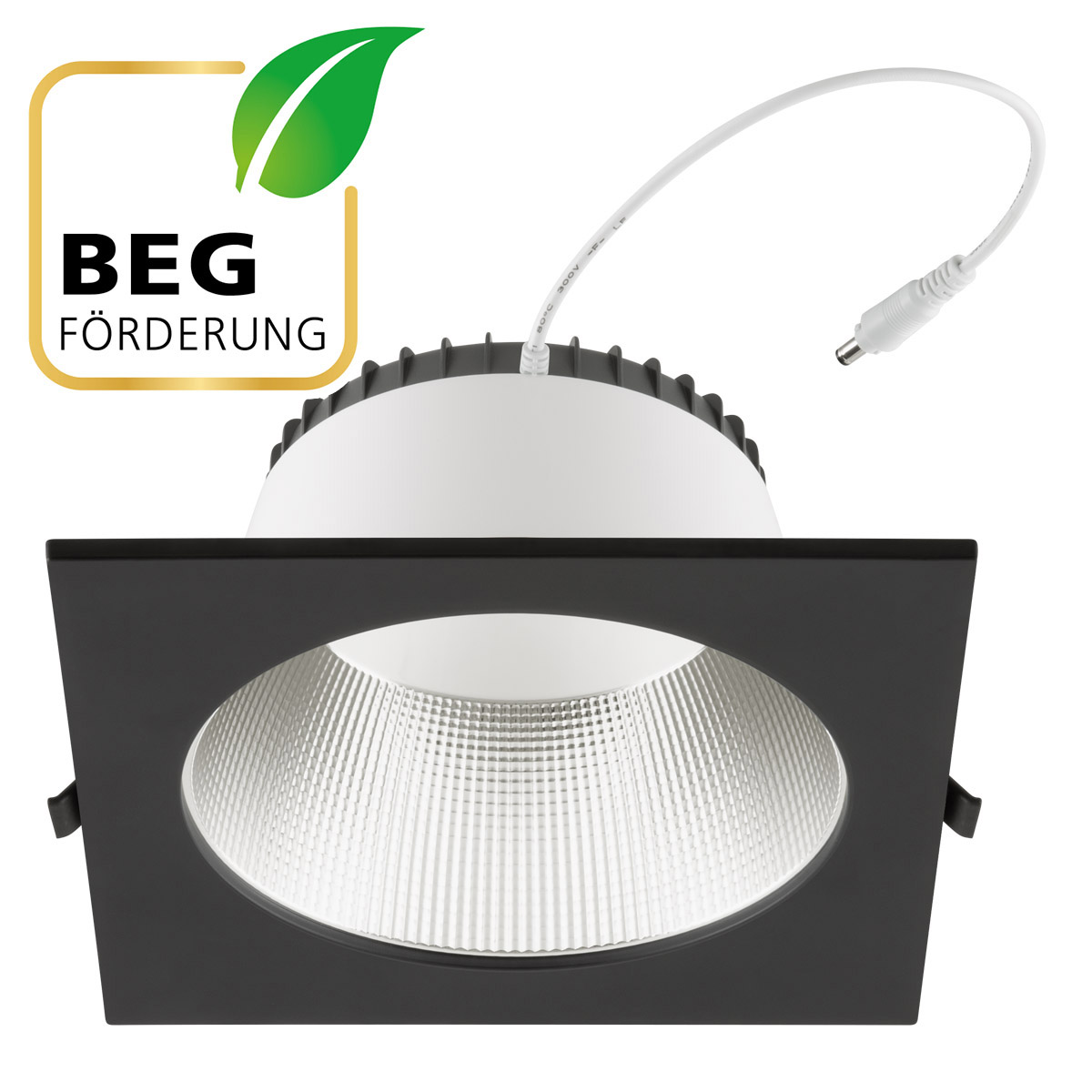 Bezeichnung LED Deckeneinbau - quad. - schwarz - 35W - IP54 - 200-240V 3000K, 4000K, 5700K - 4165lm, 4445lm, 4305lm - Phasendimmbar