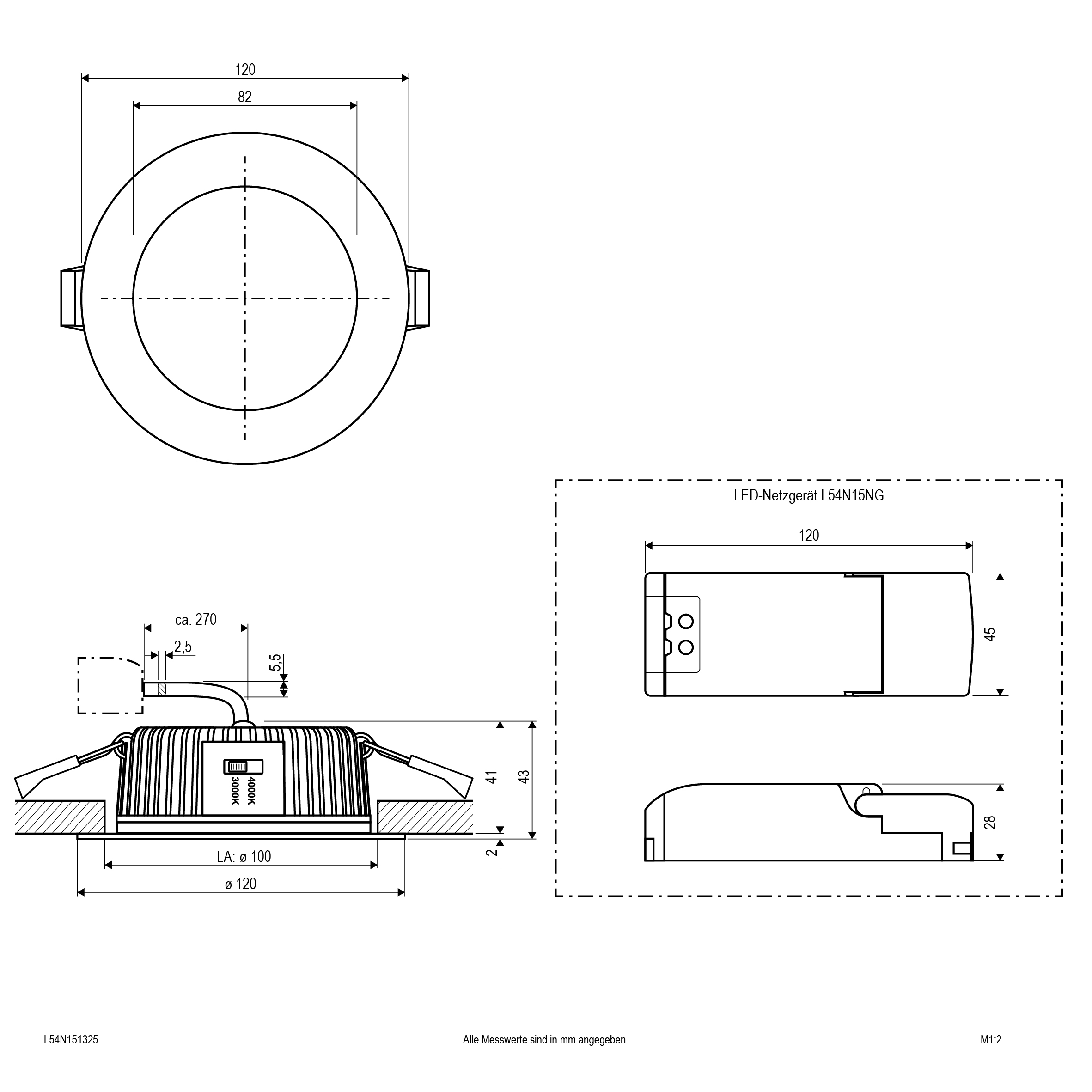 Artikeltext LED Deckeneinbauleuchte für verschiedene Anwendungsbereiche, wie z. B. flächendeckende, aber auch effektvolle Beleuchtungen in Flur, Wohnzimmer, Büro und vieles mehr. Mit dem seitlich angebrachten Schalter kann eine von zwei möglichen Farbtemperaturen eingestellt werden. Die möglichen Farbtemperaturen und daraus resultierenden Lumen sind: 3000K (1800lm) und 4000K (1900lm). Die Anschlussleitung zwischen Netzgerät und Leuchte hat eine Länge von 27cm. Das Netzgerät hat folgende Maße: 120x45x28mm. Max. tc: 68°C.