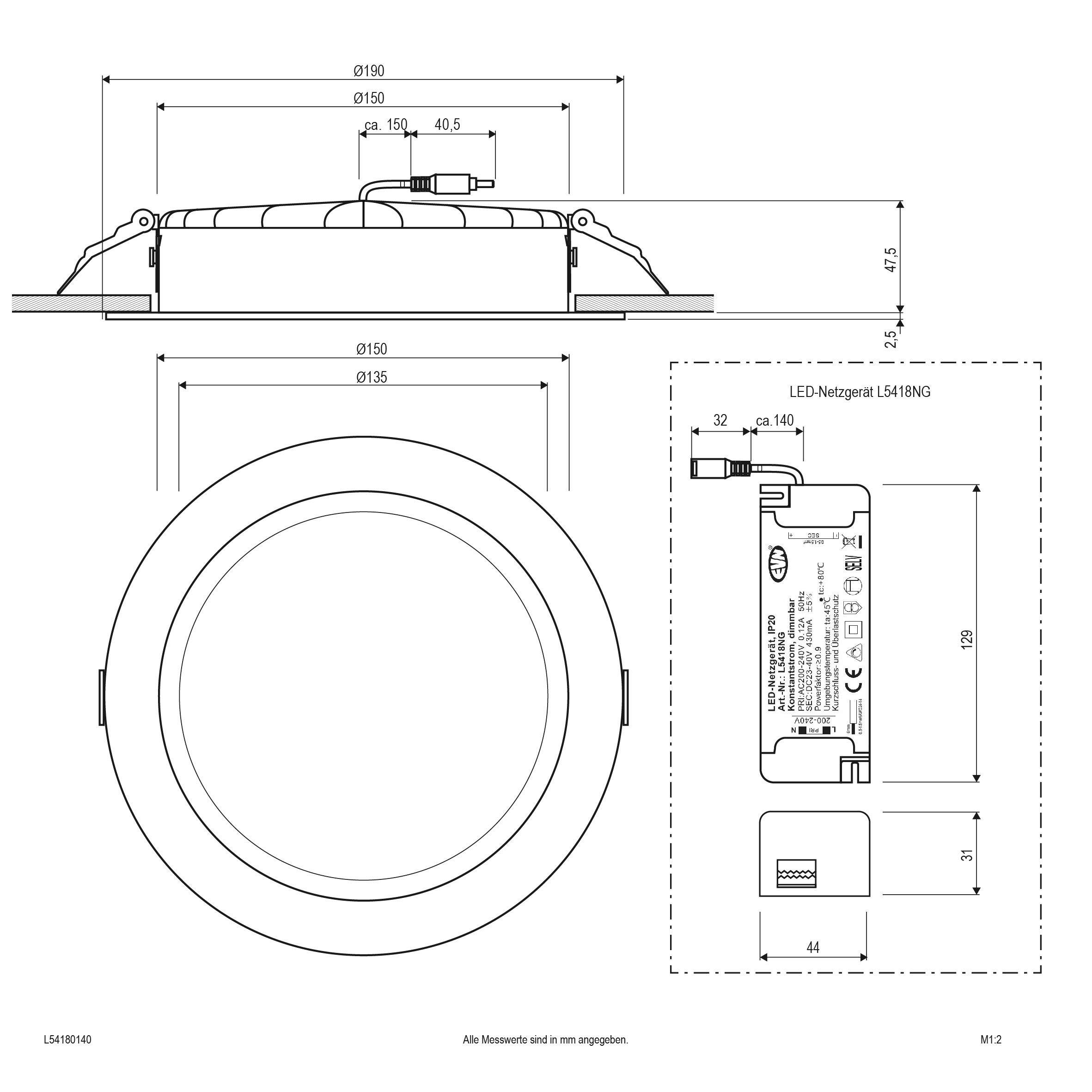 | Betriebsgerät | LED-Betriebsgerät stromgesteuert |