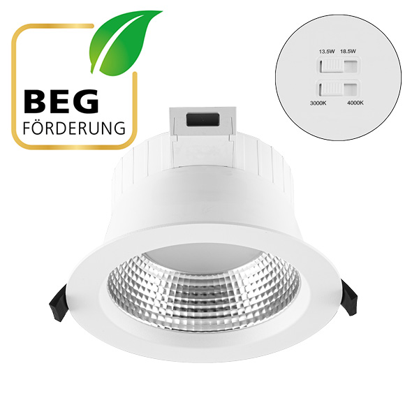 Bezeichnung LED Deckeneinbauleuchte - rund - weiß - 13,5W/18,5W - IP54 220-240V/AC - 178-260V/DC - 3000K, 4000K - 1837-2403lm