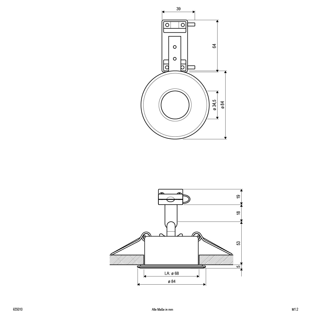| Bezeichnung | Deckeneinbau - rund - EDS IP44 - GX5,3 - max. 50W - 12V |