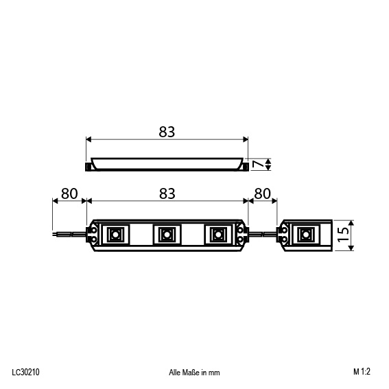 | Bezeichnung | LED-Modul - IP65 - 12V/DC - 0,72W - 60lm - 3LED - 3000K 10er-Kette |