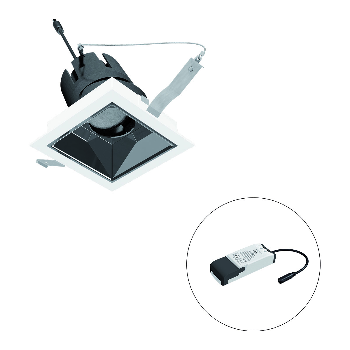| Bezeichnung | LED Deckeneinbau - quad. - schwenkbar - weiß - IP20 220-240V/AC - 6W - 2700K - 686lm - inkl. Netzgerät - Phase |