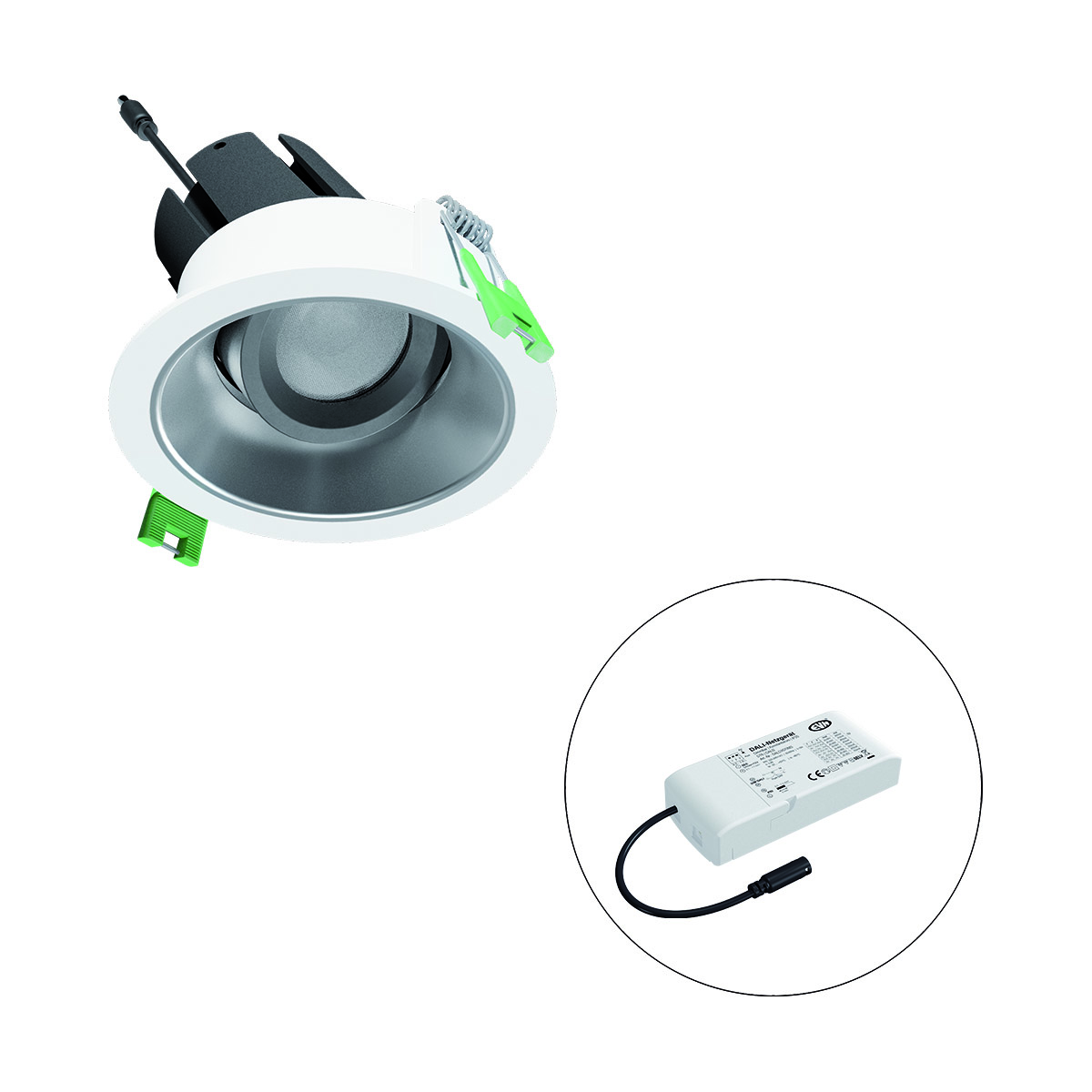 | Bezeichnung | LED Deckeneinbau - rund - dreh-/schwenkbar - weiß - IP20 220-240V/AC - 13W - 2700K - 1593lm - inkl. Netzgerät - DALI |