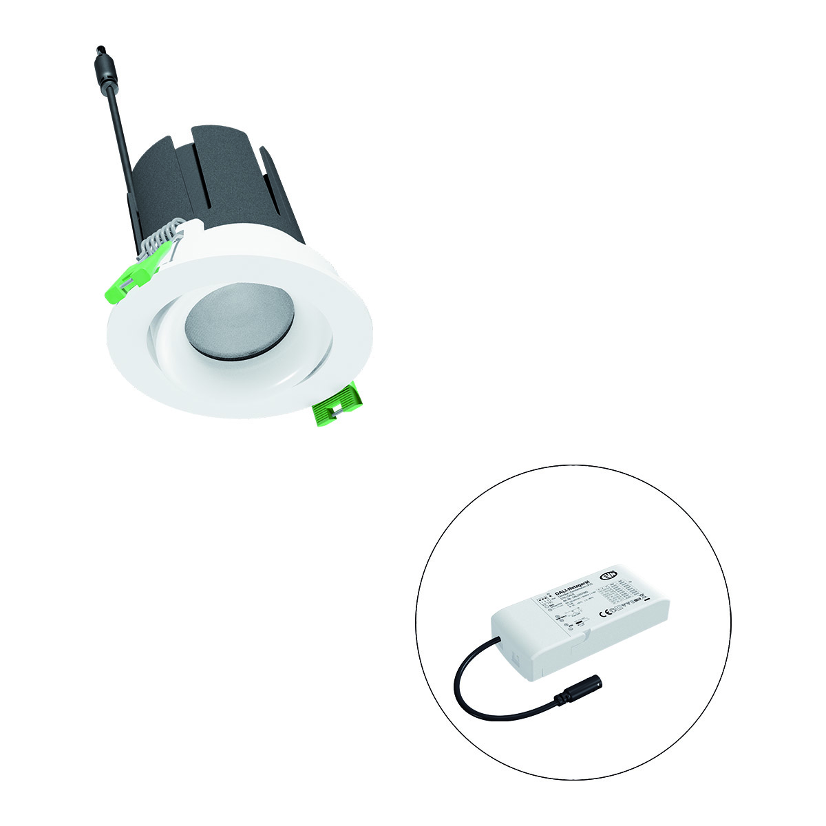 | Bezeichnung | LED Deckeneinbau - rund - schwenkbar - weiß - IP20 220-240V/AC - 13W - 2700K - 1635lm - inkl. Netzgerät - DALI |