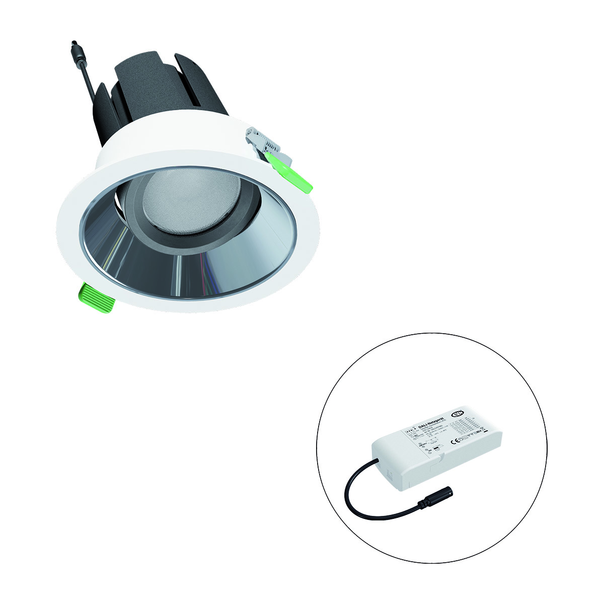 | Bezeichnung | LED Deckeneinbau - rund - schwenkbar - weiß - IP20 220-240V/AC - 18W - 3000K - 2250lm - inkl. Netzgerät - DALI |