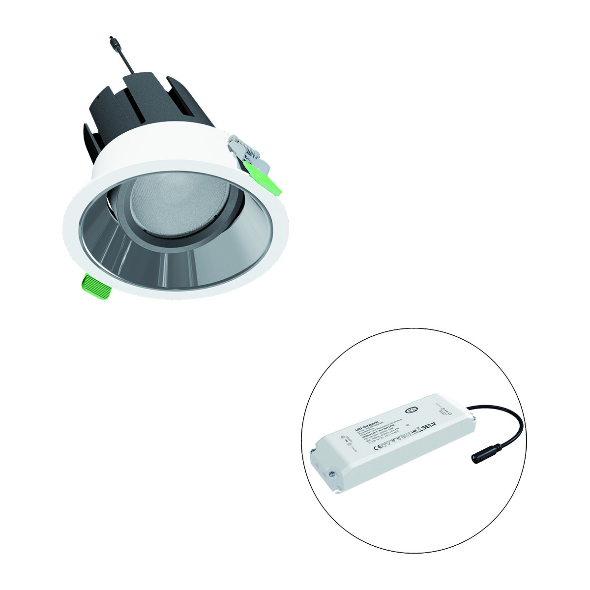 | Bezeichnung | LED Deckeneinbau - rund - dreh-/schwenkbar - weiß - IP20 220-240V/AC - 38W - 4000K - 4988lm - inkl. Netzgerät - Phase |