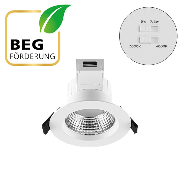 | Bezeichnung | LED Deckeneinbauleuchte - rund - weiß - 5W/7,5W - IP54 220-240V/AC - 178-260V/DC - 3000K, 4000K - 639-917lm |