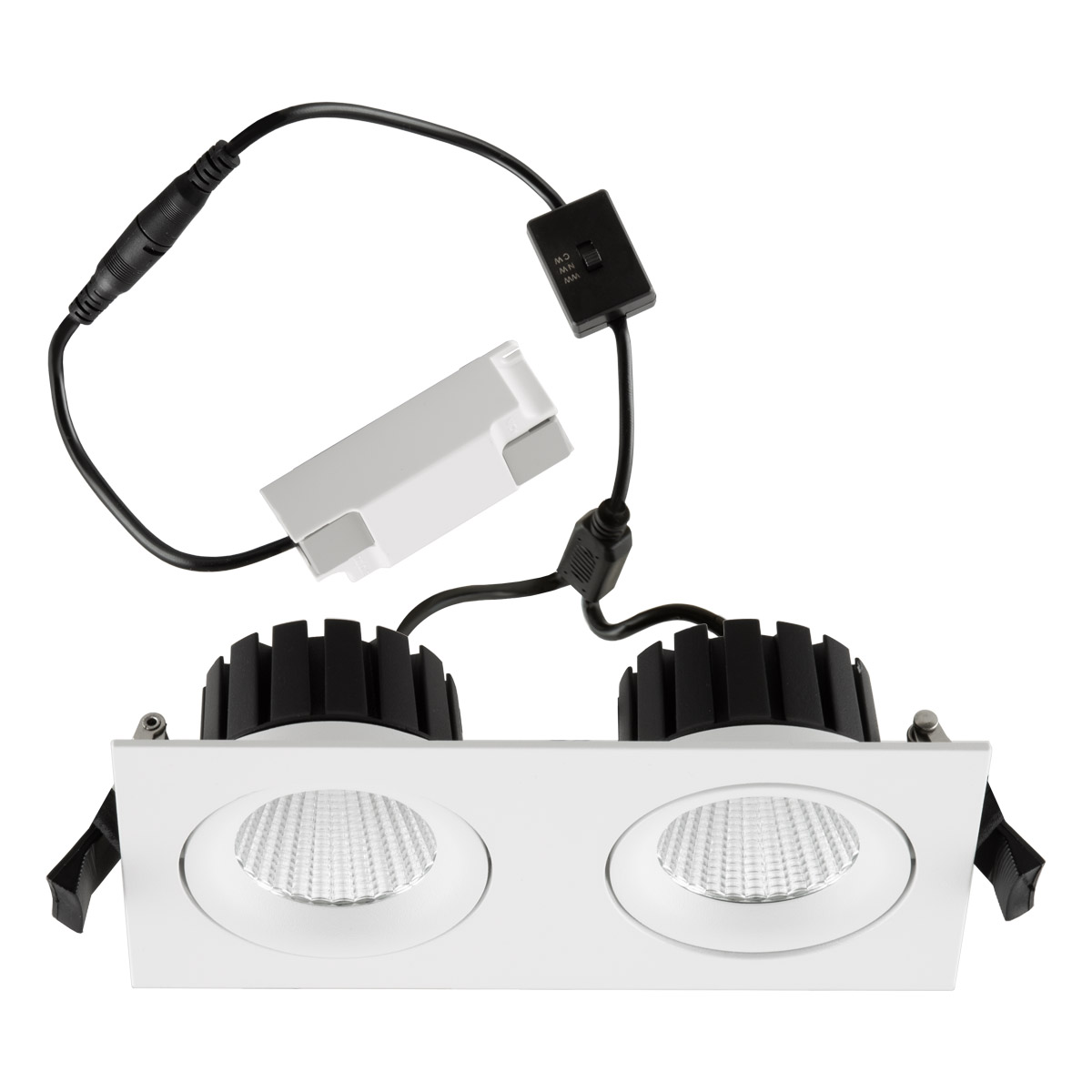 LED Deckeneinbau - rechte. - schwenkb. - weiß - IP54 (front) 200-240V - 2x10W - 3000K, 4000K, 5000K - 2x1000-1100lm