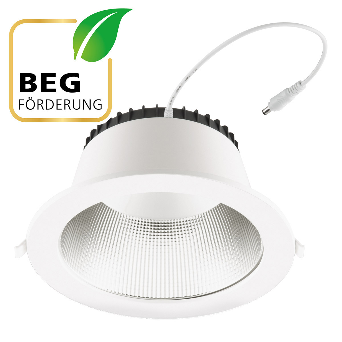 | Bezeichnung | LED Deckeneinbau - rund - weiß - 35W - IP54 - 200-240V 3000K, 4000K, 5700K - 4165lm, 4445lm, 4305lm - Phasendimmbar |