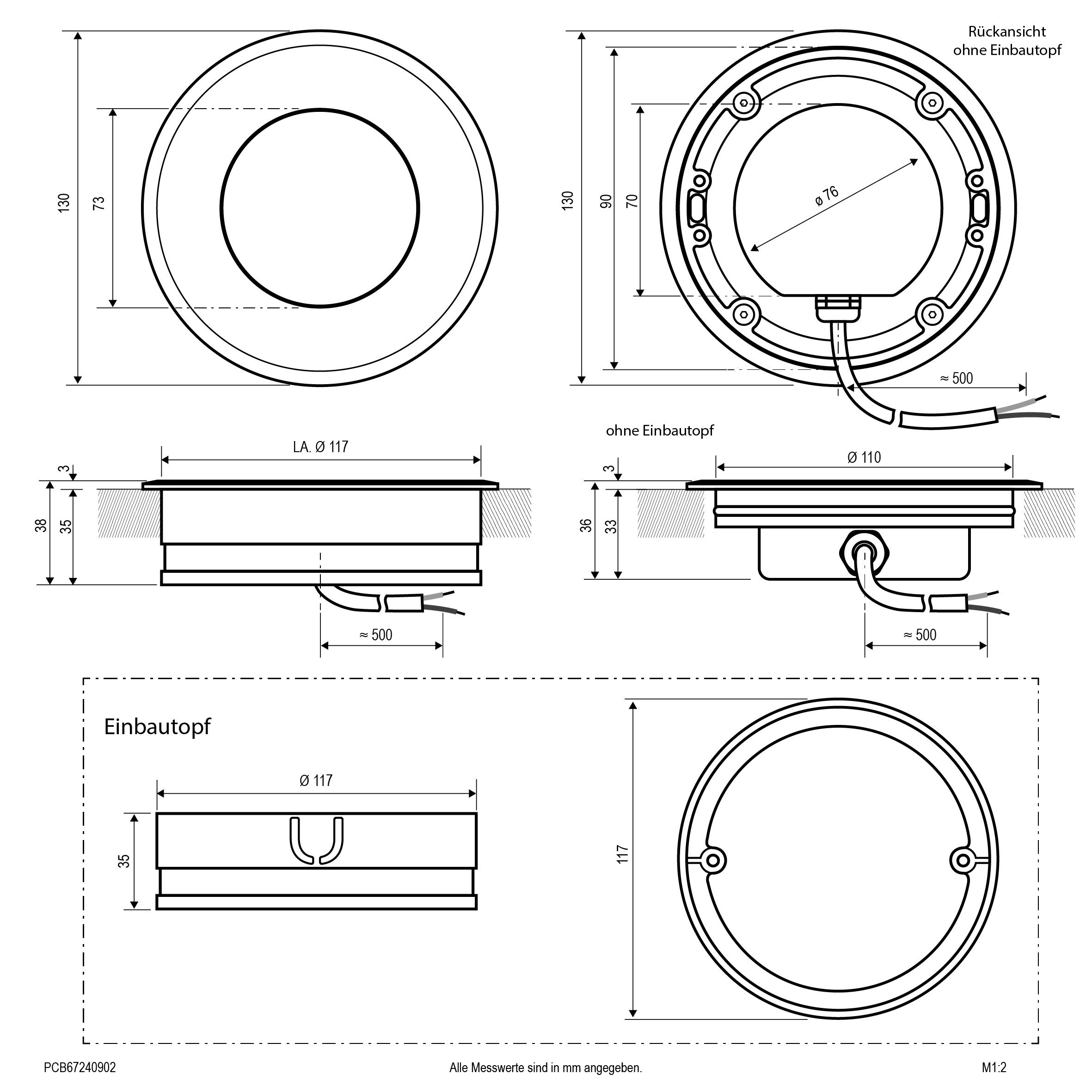 | Bezeichnung | LED Bodeneinbau - rund - EDS / Alu IP67 - 24V/DC - 9W - 3000K - 1081lm |