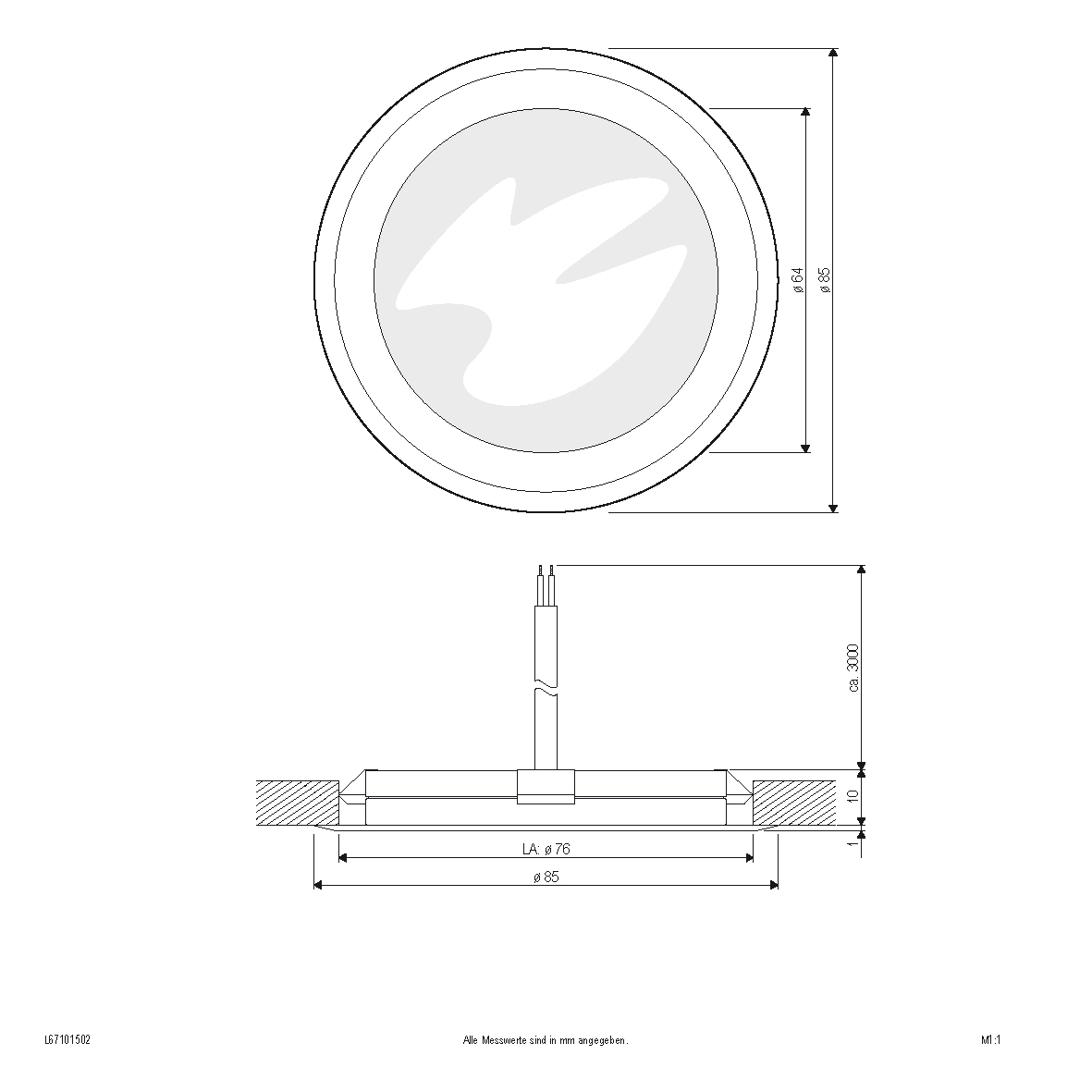 | Bezeichnung | LED Bodeneinbau - rund - EDS IP67 - 12V/DC - 1,5W - 3000K - 108lm |