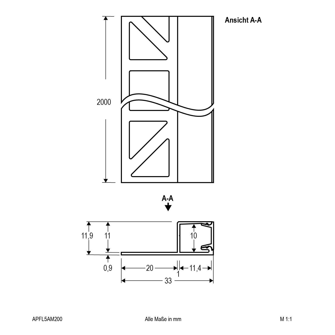 | Abmessung (LxBxH) | 2000 x 11.9 x 33 mm |