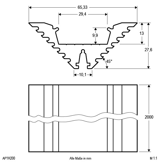 | Abmessung (LxBxH) | 2000 x 65.4 x 27.6 mm |