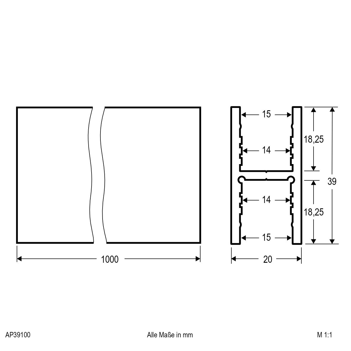 | Abmessung (LxBxH) | 1000 x 20 x 39 mm |