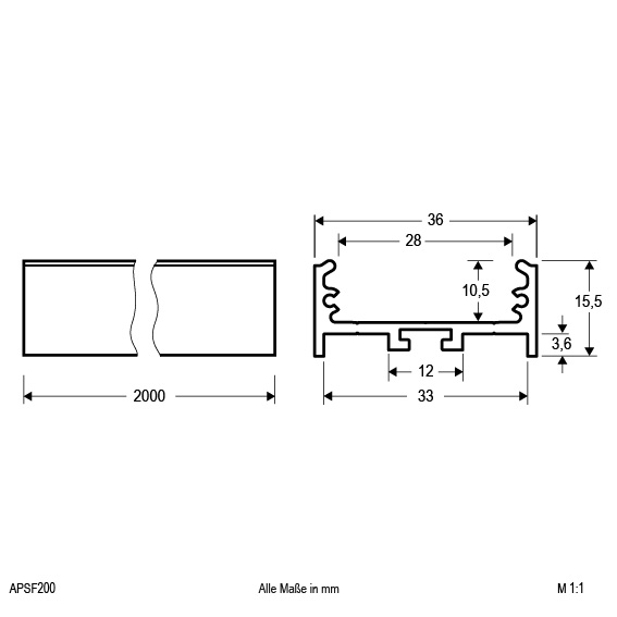 Abmessung (LxBxH)2000 x 36 x 15.5 mm