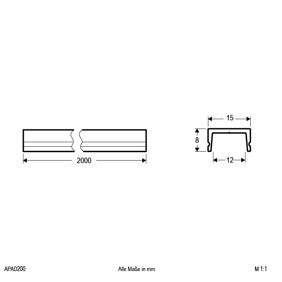 | Abmessung (LxBxH) | 2000 x 15 x 8 mm |
