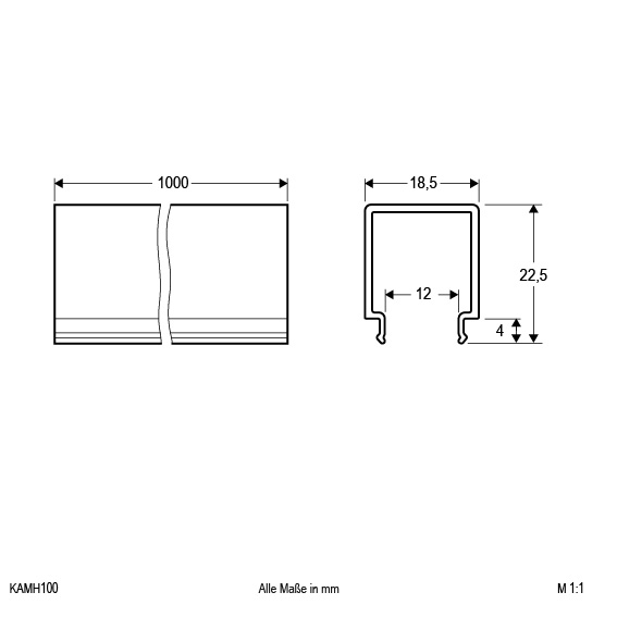 | Abmessung (LxBxH) | 1000 x 18.5 x 22.5 mm |