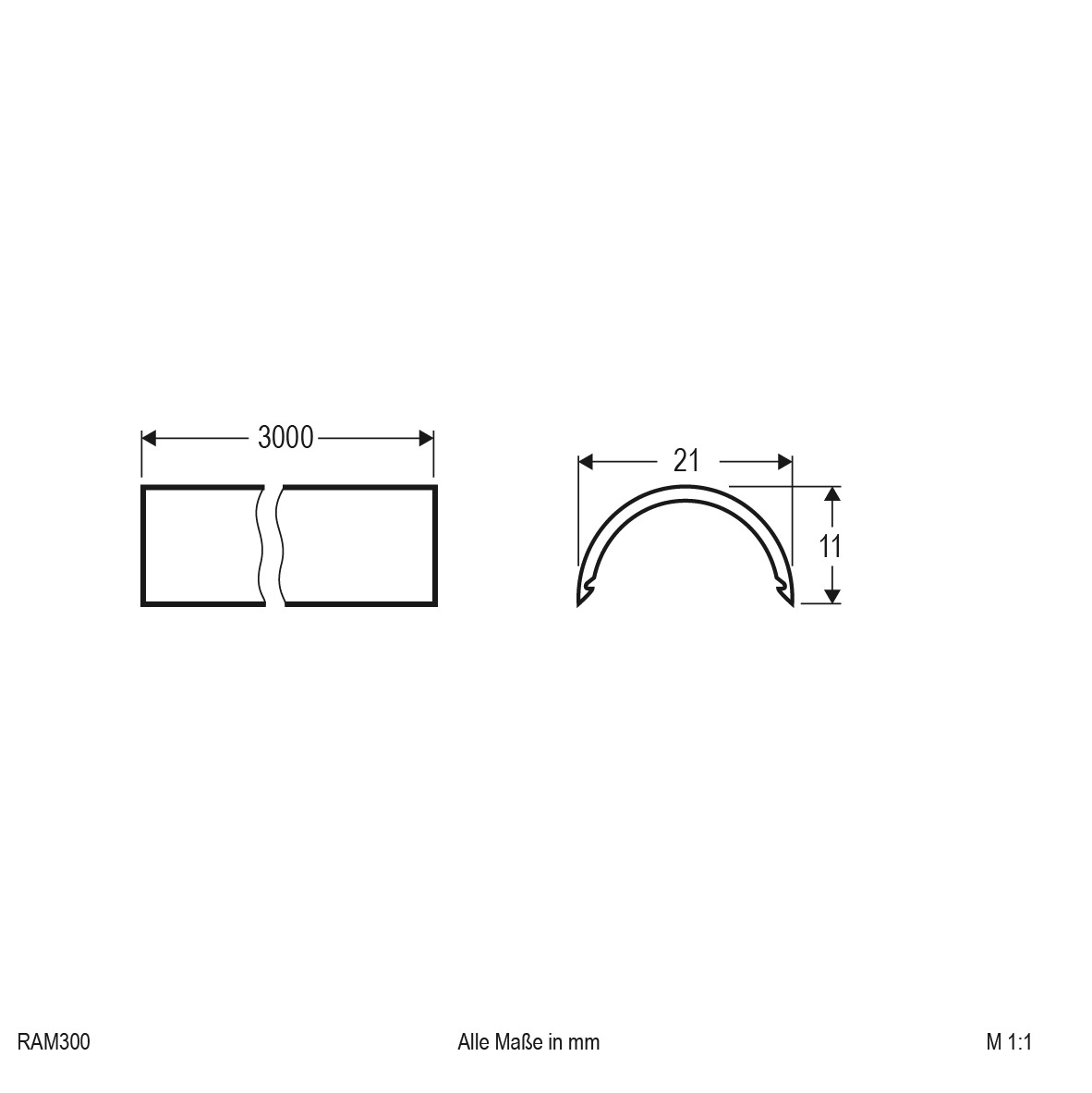 | Abmessung (LxBxH) | 3000 x 21 x 11 mm |