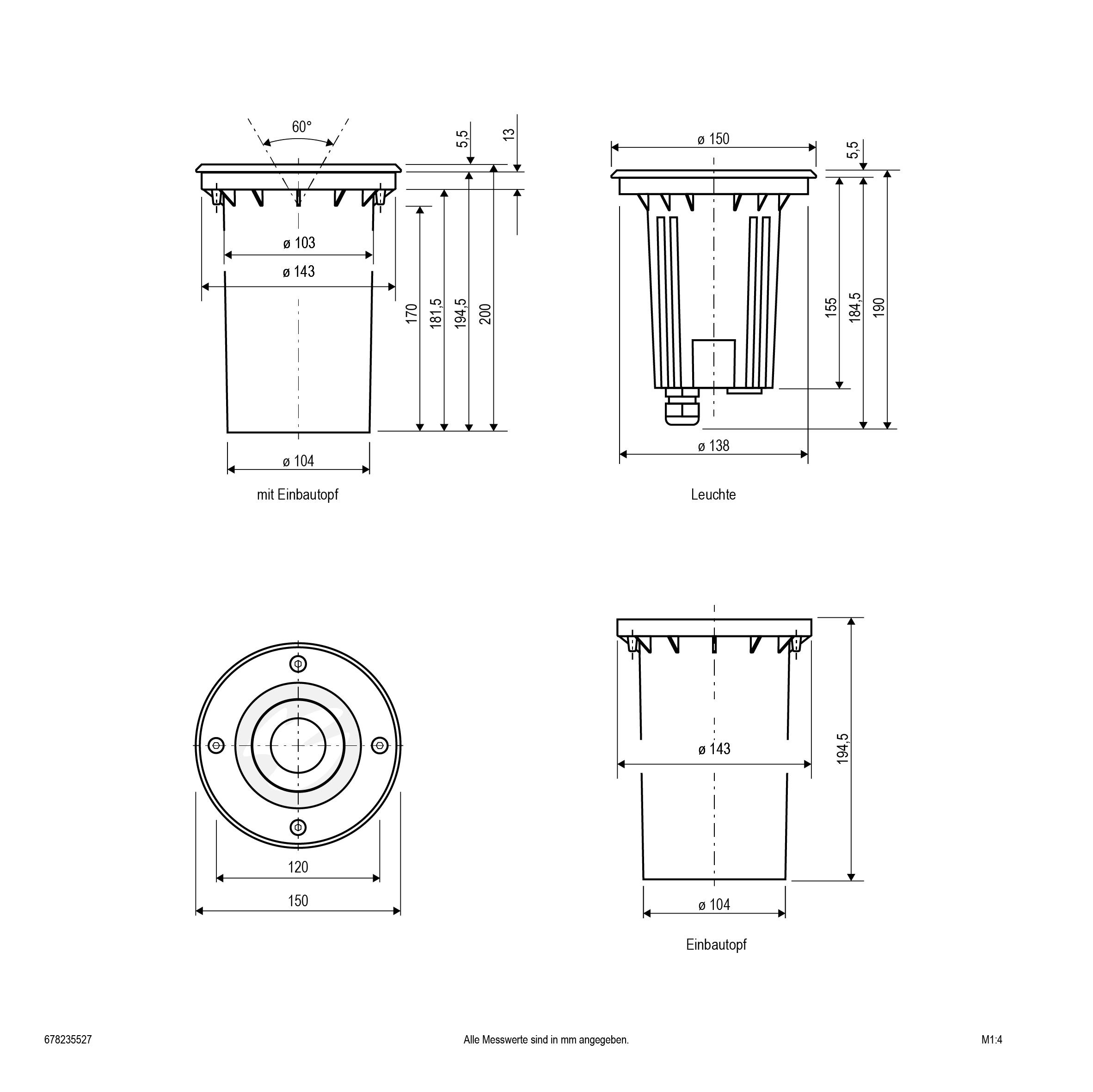| Einbaudurchmesser | 143 mm |