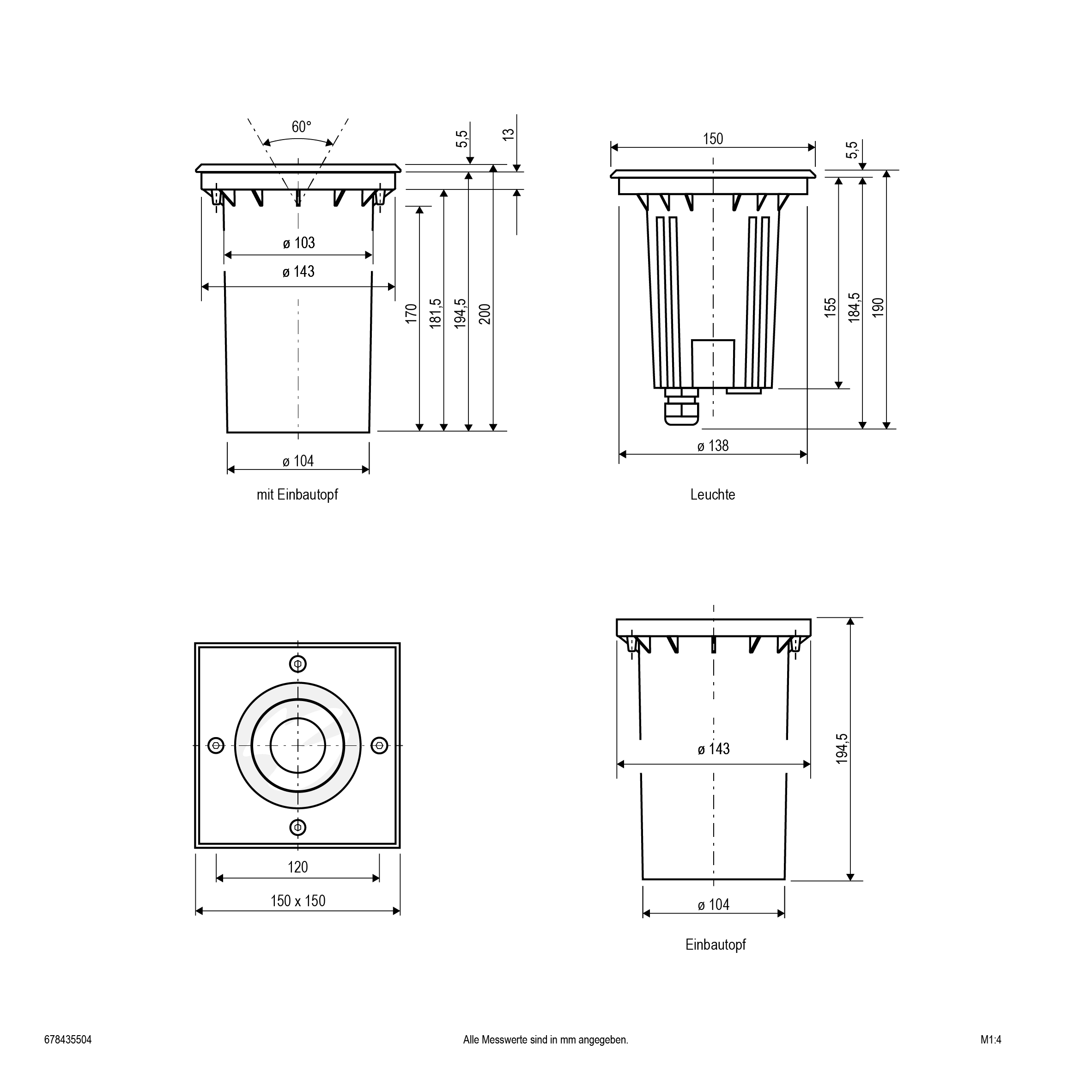 | Einbaudurchmesser – (min./max.) | 143 - 143 |