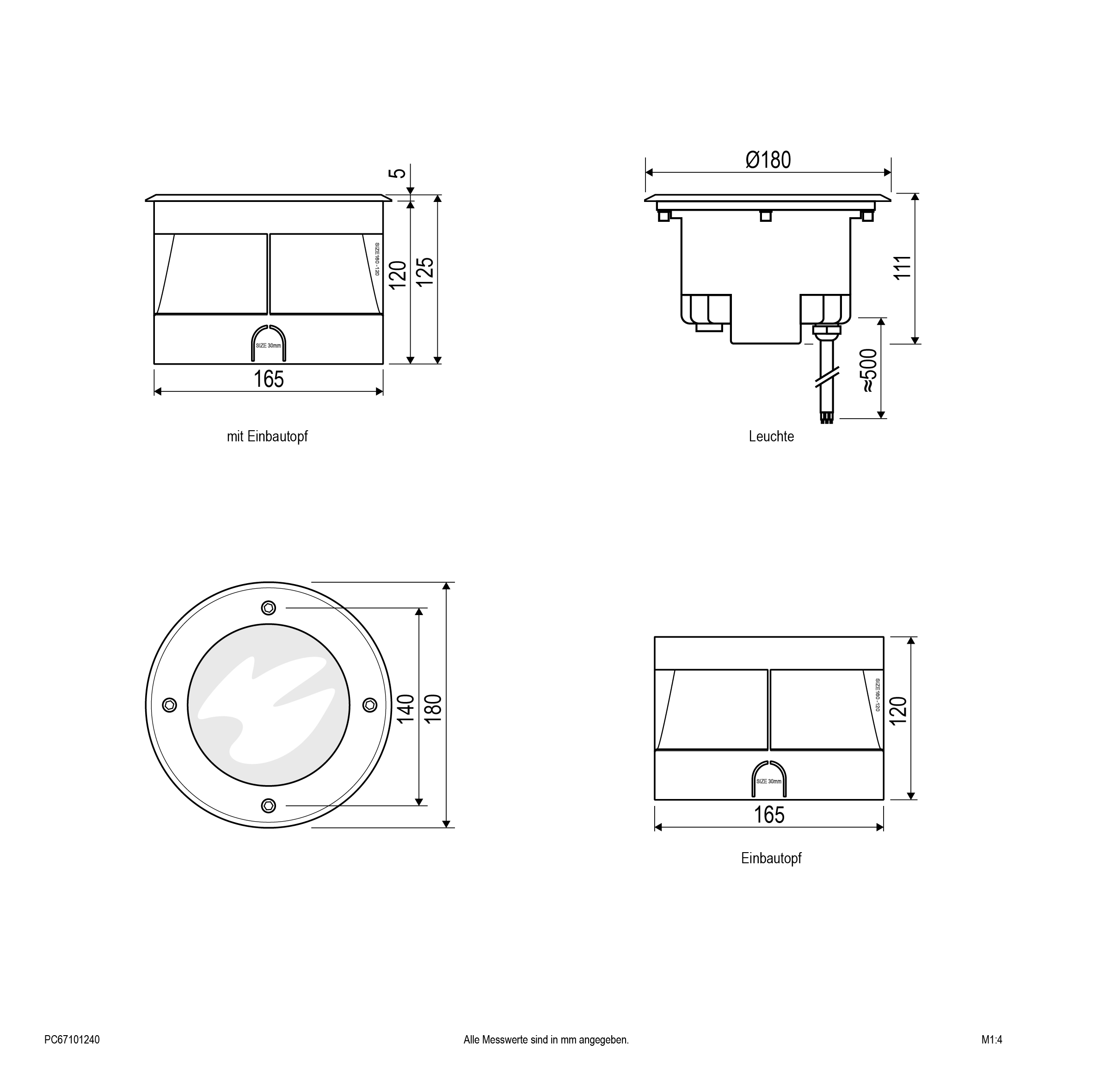 Der Leuchtenkörper der Bodeneinbauleuchte ist aus massivem Aluminium gefertigt, der obere Abdeckring hingegen aus V2A-Edelstahl und kann für vielfältige Anwendungen im Außenbereich verwendet werden. Die Montage erfolgt mittels der im Lieferumfang befindlichen Kunststoff-Einbauhülse. Da der COB-LED-Chip fest verbaut ist, fallen keine zusätzlichen Kosten für Leuchtmittel an. Ebenso entstehen auch keine zusätzlichen Kosten für ein Vorschaltgerät, da der Anschluss direkt an die 230V-Zuleitung erfolgt. Zusätzlich befindet sich auf der Unterseite ein selbstentlüftendes Ventil. Die maximale Überfahrgeschwindigkeit beträgt 20km/h. Optional ist die Glasabdeckung in klar erhältlich (PC6710888), wodurch sich die Lichtausbeute auf 1144lm erhöht. Die Leuchte hat eine 0,50m lange Anschlussleitung (ÖLFLEX CLASSIC 110 BLACK 3 x 0,75mm²) mit freien Aderenden.