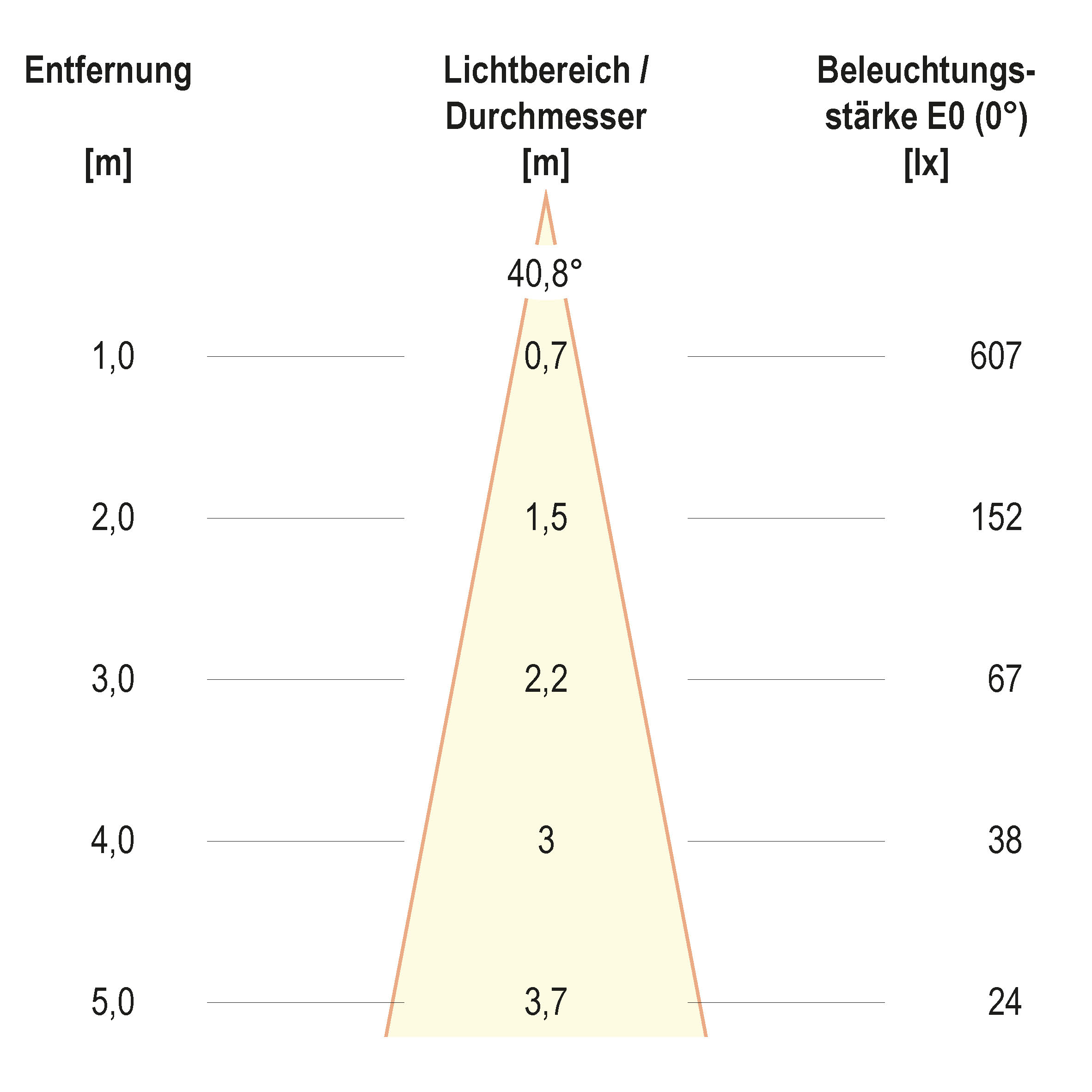 | Ausstrahlungswinkel (Bereich) | mediumstrahlend 21-40° |