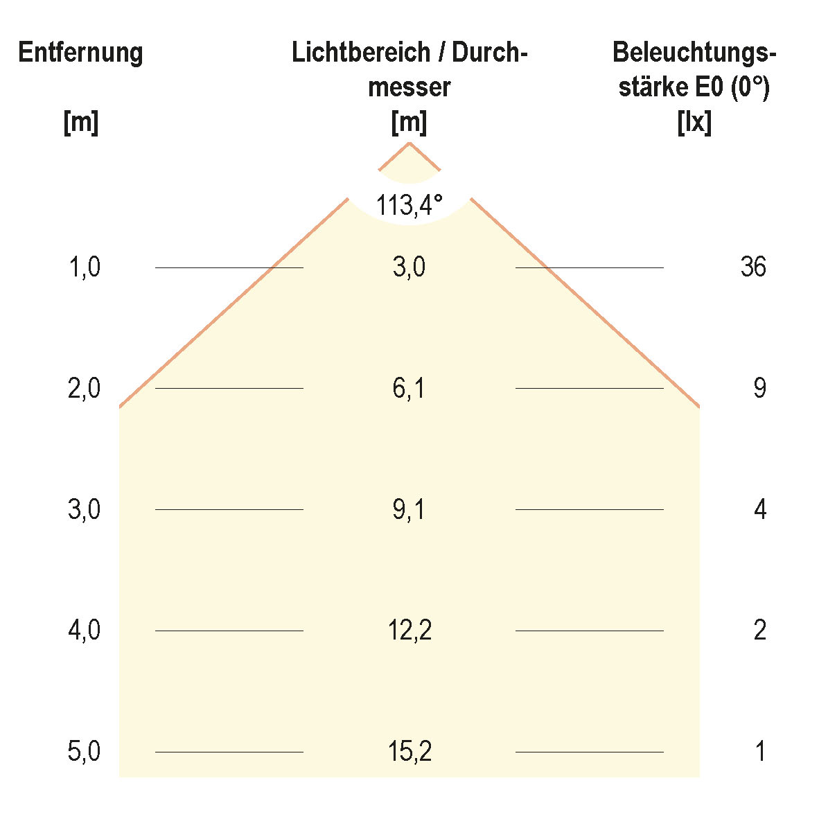 | Ausstrahlungswinkel (Bereich) | extrem breitstrahlend >80° |