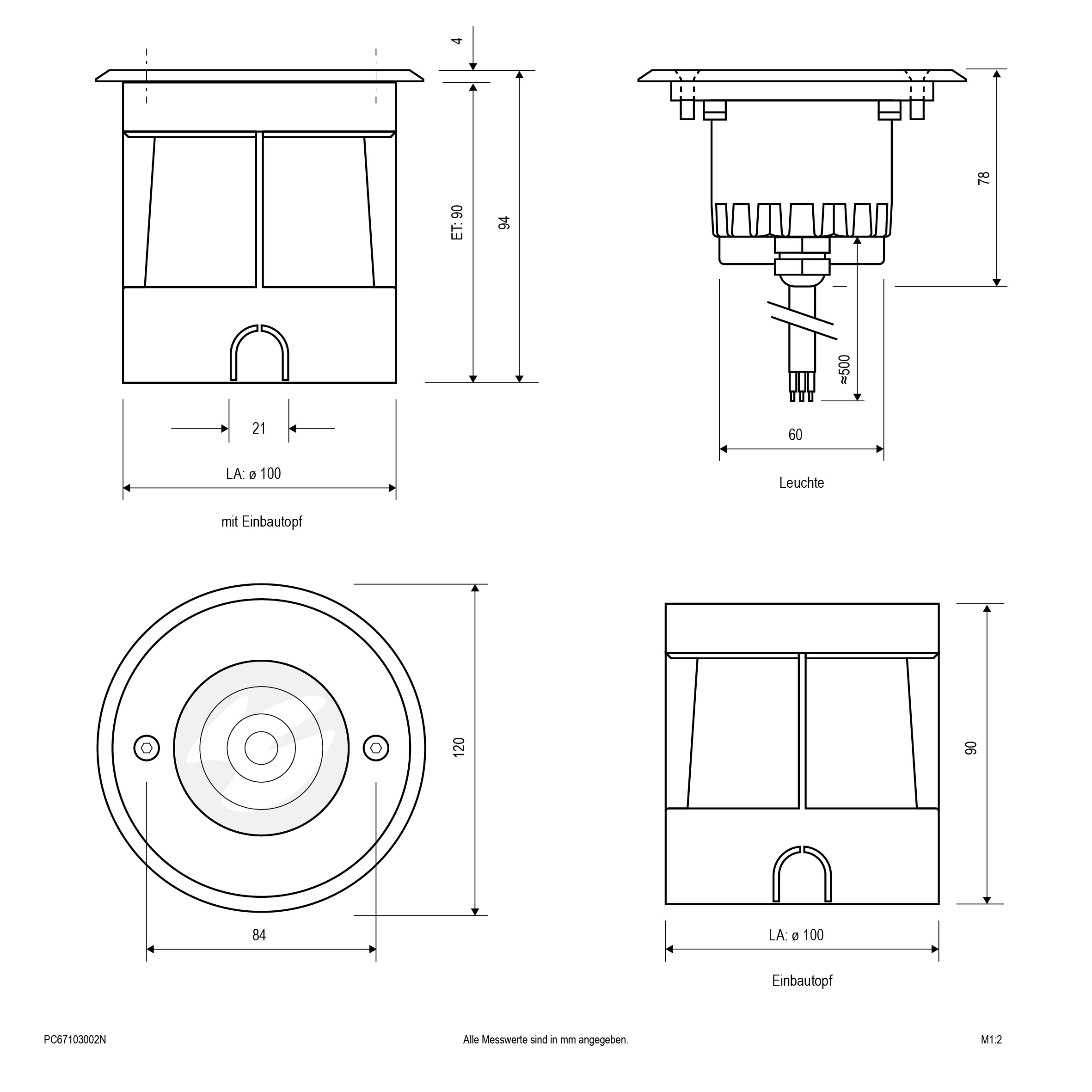 | Einbaudurchmesser – (min./max.) | 100 - 100 |