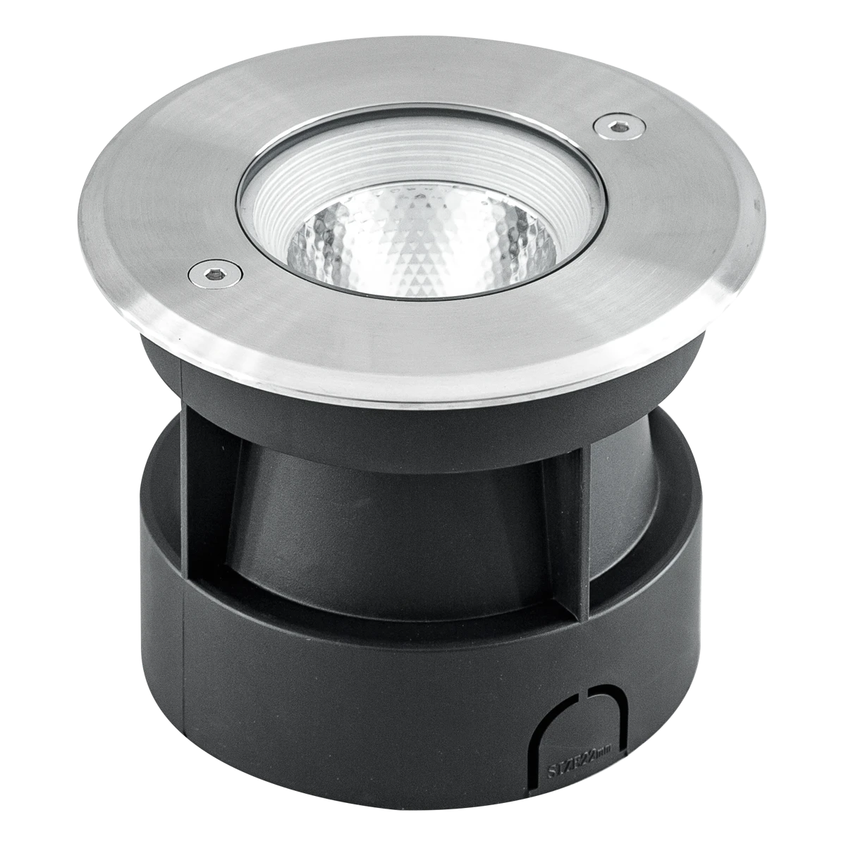 Der Leuchtenkörper der Bodeneinbauleuchte ist aus massivem Aluminium gefertigt, der obere Abdeckring hingegen aus V2A-Edelstahl und kann für vielfältige Anwendungen im Außenbereich verwendet werden. Die Montage erfolgt mittels der im Lieferumfang befindlichen Kunststoff-Einbauhülse. Da der COB-LED-Chip fest verbaut ist, fallen keine zusätzlichen Kosten für Leuchtmittel an. Ebenso entstehen auch keine zusätzlichen Kosten für ein Vorschaltgerät, da der Anschluss direkt an die 230V-Zuleitung erfolgt. Die maximale Überfahrgeschwindigkeit beträgt 20km/h. Die Leuchte hat eine 0,50m lange Anschlussleitung (ÖLFLEX CLASSIC 110 BLACK 3 x 0,75mm²) mit freien Aderenden. Der Ausstrahlwinkel beträgt 10°.