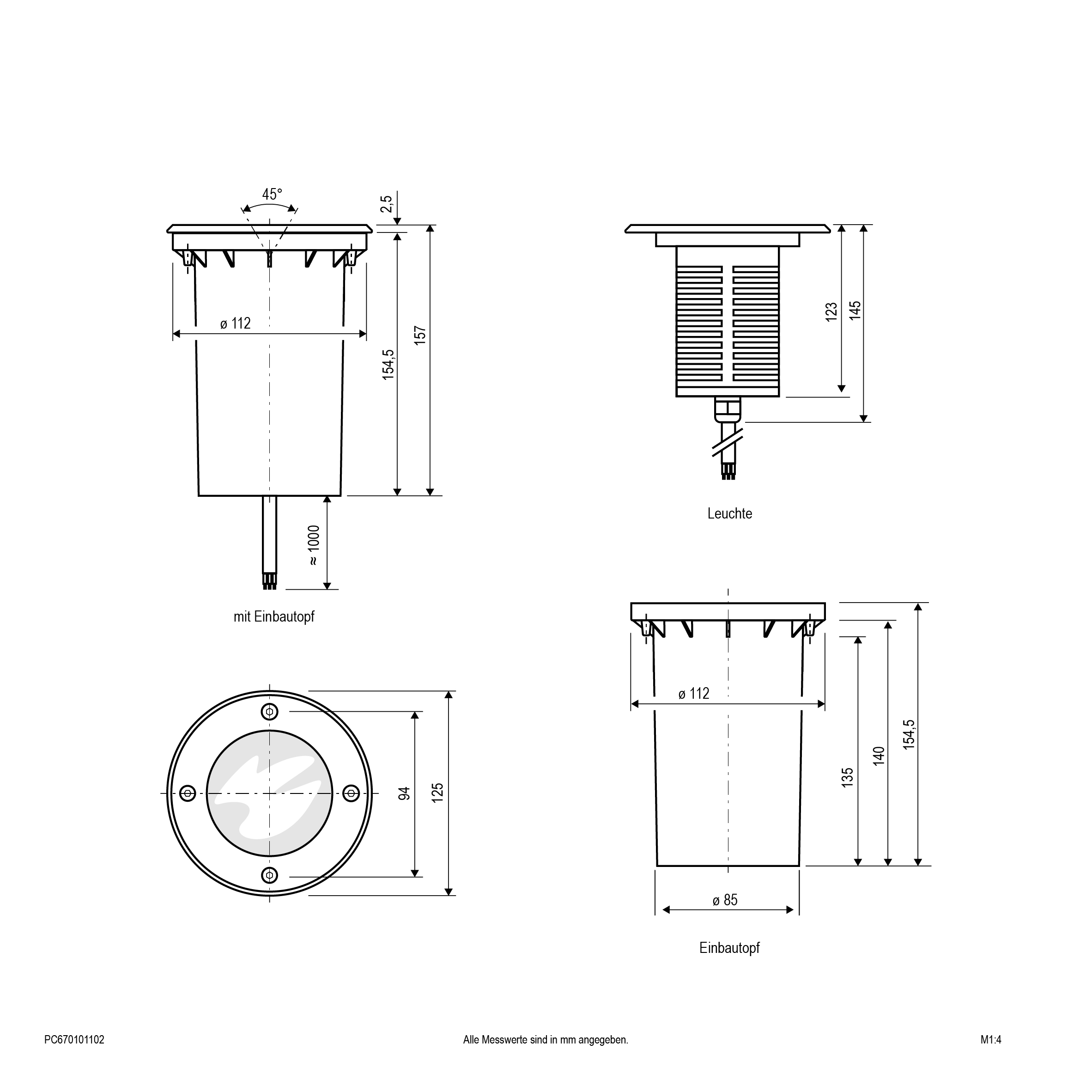 | Einbaudurchmesser – (min./max.) | 112 - 112 |