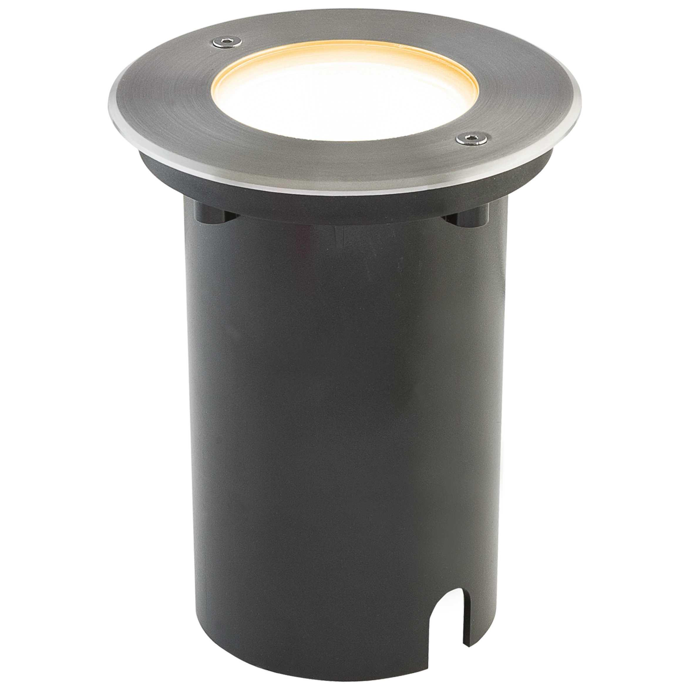 Der Leuchtenkörper der Bodeneinbauleuchte ist aus massivem Aluminium gefertigt, der obere Abdeckring hingegen aus V4A-Edelstahl und kann für vielfältige Anwendungen im Außenbereich verwendet werden. Die Montage erfolgt mittels der im Lieferumfang befindlichen Kunststoff-Einbauhülse. Der angegebene Lochausschnitt bezieht sich auf den oberen Teil der Einbauhülse, welcher sich, nach einem Versatz von 20mm, auf 88mm reduziert. Da der COB-LED-Chip fest verbaut ist, fallen keine zusätzlichen Kosten für Leuchtmittel an. Ebenso entstehen auch keine zusätzlichen Kosten für ein Vorschaltgerät, da der Anschluss direkt an die 230V-Zuleitung erfolgt. Die maximale Überfahrgeschwindigkeit beträgt 20km/h.
