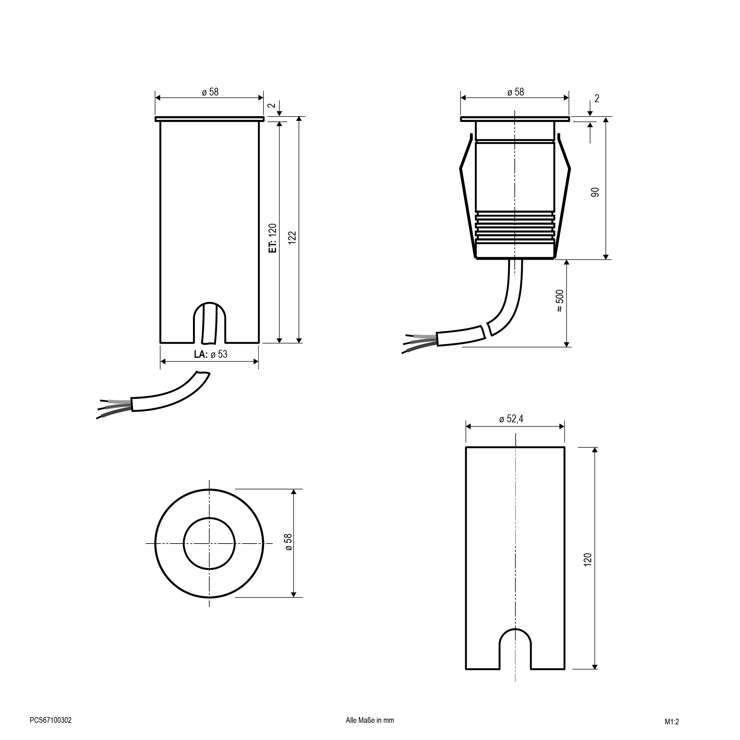 | Einbaudurchmesser – (min./max.) | 53 - 53 |
