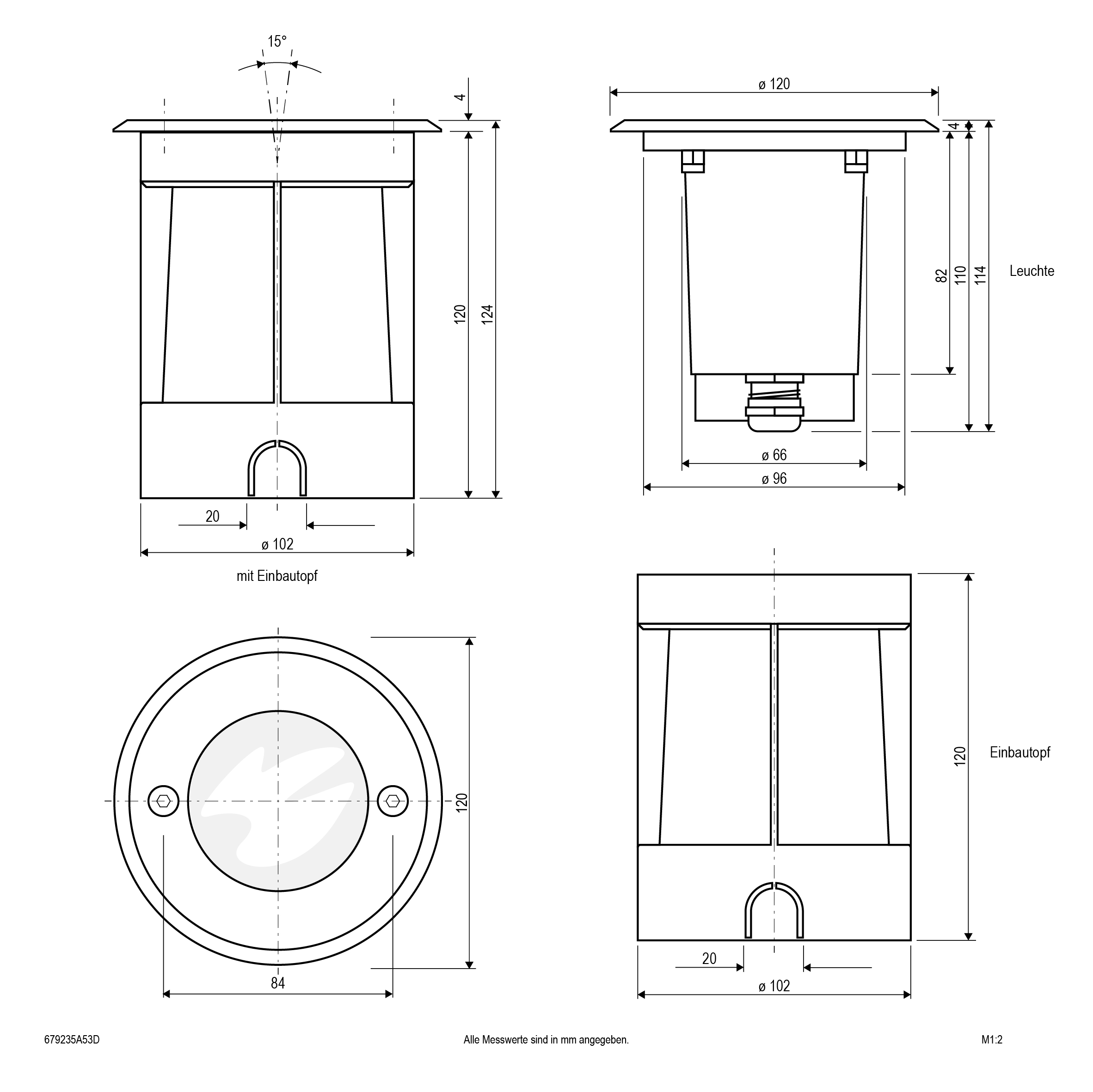 | Einbaudurchmesser – (min./max.) | 102 - 102 |