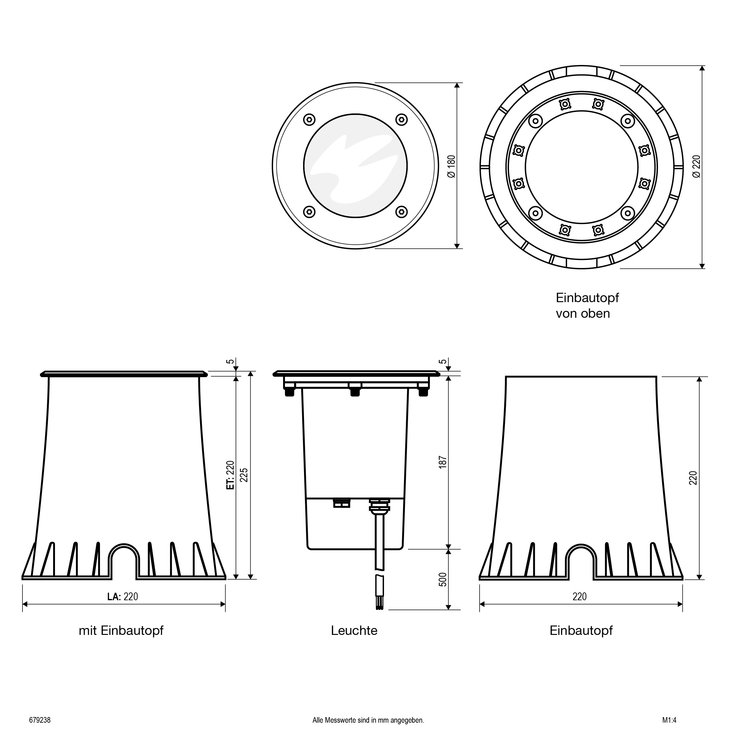 | Einbaudurchmesser | 220 mm |