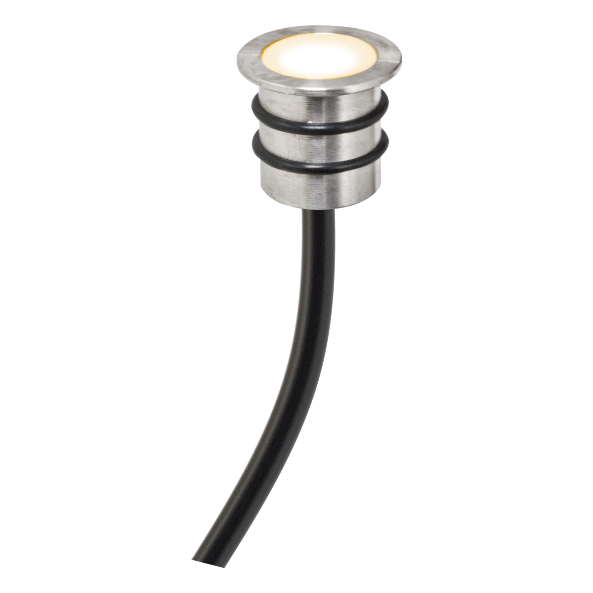 Kleiner Lichtpunkt für vielfältige Anwendungen im Innen- und Außenbereich. Auf Grund der MM-Kennzeichnung kann dieser sogar im Möbelbau verwendet werden. Extrem geringe Leistungsaufnahme und trotzdem genug Leuchtkraft um optische Akzente zu setzten, wie z. B. Seitenwangen von Treppen, im Terrassenboden und vieles mehr. Der Lichtpunkt ist komplett aus Edelstahl gefertigt und besitzt eine 2m lange Anschlussleitung mit freien Aderenden. Die Art der Dimmung ist abhängig vom verwendeten Netzgerät.