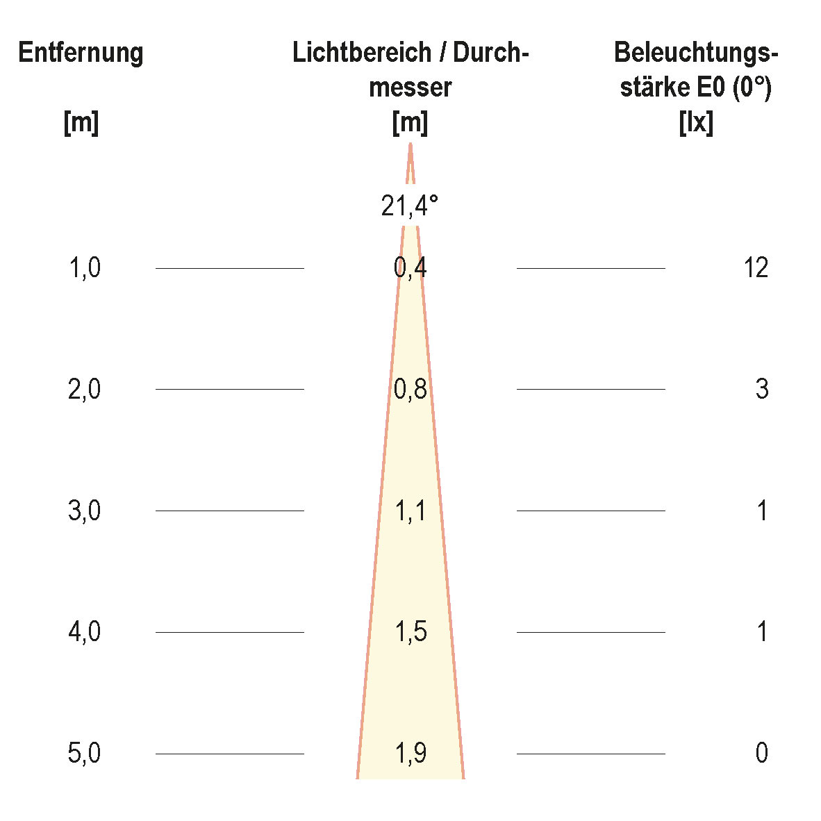 | Ausstrahlungswinkel (Bereich) | engstrahlend 11-20° |