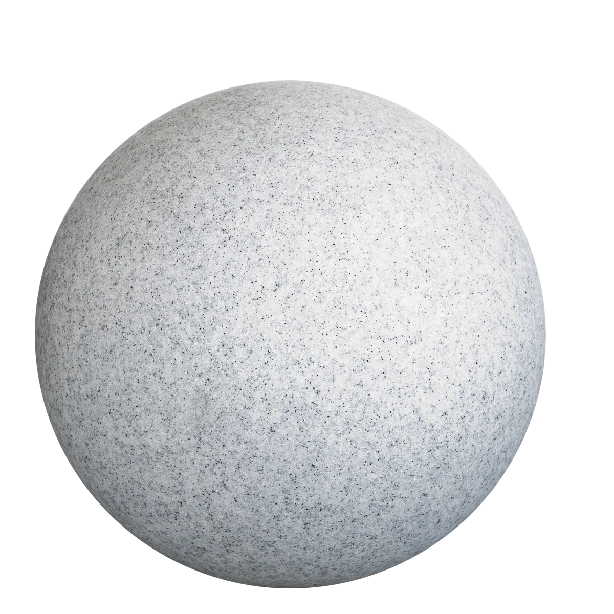 Dekorative Kugelleuchte für den Außenbereich aus Kunststoff in Stein-Design. Dank der E-27 Fassung können sowohl LED-Leuchtmittel bis max. 10W, als auch Energiesparleuchtmittel bis max. 25W eingesetzt werden. Je nach verwendetem Leuchtmittel lassen sich die unterschiedlichsten Effekte erzielen. Da die Kugelleuchte noch in zwei weiteren Größen erhältlich ist, lassen sich auch kleine Gruppen der Leuchten als absoluter Blickfang zusammen platzieren. Dank des im Lieferumfang enthaltenen Erdspieß hat die Kugel jederzeit einen sicheren Stand. Die 2m lange Anschlussleitung ist mit einem Konturenstecker versehen. Die ta beträgt -20°C - 50°C.