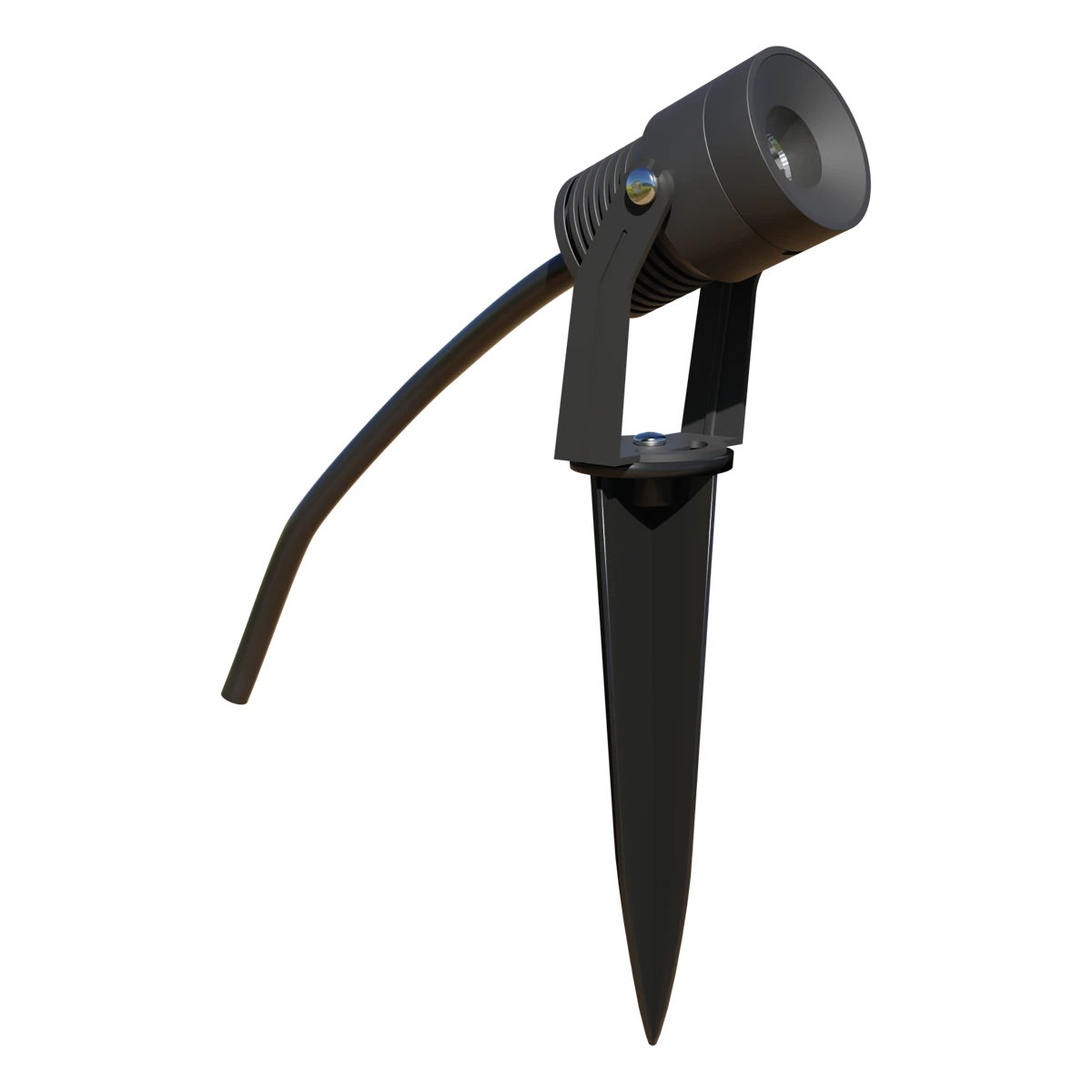 Die Leuchte kann entweder mittels des montierten Bügels direkt auf dem Untergrund, oder optional mit dem mitgeliefertem Erdspieß im weichen Untergrund montiert werden. Am Strahler befindet sich eine 1,5m lange Anschlussleitung mit freien Aderenden. Der Schwenkwinkel der Leuchte beträgt 45°. Der Erdspieß hat eine Länge von 170mm. L80B10 bei 50.000h