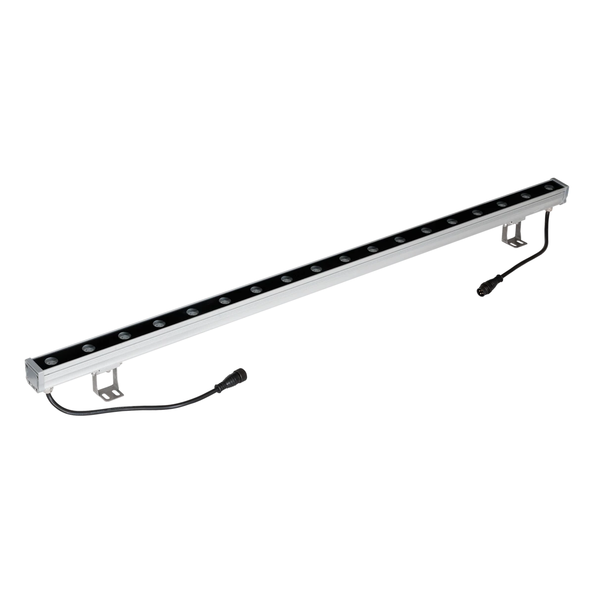 Der RGB LED Wallwasher kann nicht nur für zahlreiche Anwendungen im Außenbereich, sondern ebenso im Innenbereich verwendet werden. Die Montage erfolgt mit den im Lieferumfang enthaltenen Haltern. Diese ermöglichen einen Schwenkbereich von 225°. Die angegebene Höhe ist inkl. Halter, im nicht geschwenkten Zustand gemessen. Zur Vermeidung von Kondenswasser verfügt der Wallwasher über ein selbstentlüftendes Entlüftungsventil. An beiden Seiten des Wallwasher befindet sich eine jeweils 24cm lange Anschlussleitung mit Stecker bzw. Buchse, wodurch mehrere Wallwascher (max. 6) miteinander verbunden und somit über nur ein Betriebsgerät und einen Controller betrieben werden können. Dadurch können alle Wallpainer synchron gesteuert werden. Die Zuleitung zum Anschluss an das Netzgerät ist separat, in den Längen 10m (P65ASL1000RGB) oder 3m (P65ASL300RGB) erhältlich. Ebenso ist eine 1m lange Verbindungsleitung separat erhältlich (P65VBL100RGB). Die angegebenen Lumen werden bei voller Leistung aller Farben erreicht. ta: -20°C - 45°C. Der Ausstrahlwinkel beträgt 40°.