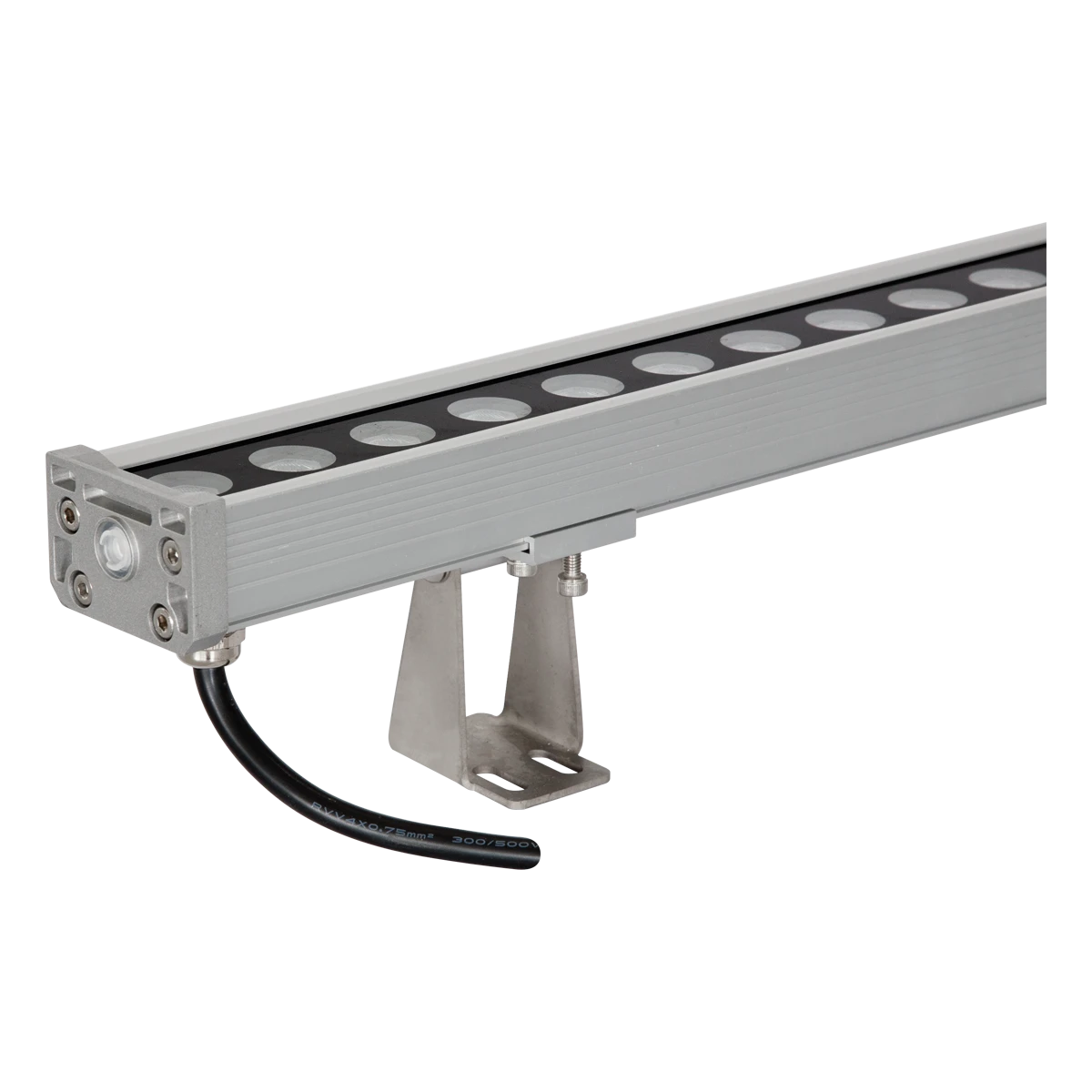 Der LED Wallwasher kann nicht nur für zahlreiche Anwendungen im Außenbereich, sondern ebenso im Innenbereich verwendet werden. Die Montage erfolgt mit den im Lieferumfang enthaltenen Haltern. Diese ermöglichen einen Schwenkbereich von 180°. Die angegebene Höhe ist inkl. Halter, im nicht geschwenkten Zustand gemessen. Zur Vermeidung von Kondenswasser verfügt der Wallwasher über ein selbstentlüftendes Entlüftungsventil. An beiden Seiten des Wallwasher befindet sich eine jeweils 20cm lange Anschlussleitung mit Stecker bzw. Buchse, wodurch mehrere Wallwascher (max. 4) miteinander verbunden und somit über nur ein Betriebsgerät betrieben werden können. Die Zuleitung zum Anschluss an das Netzgerät ist separat, in den Längen 10m (P65ASL1000UNI) oder 3m (P65ASL300UNI) erhältlich. Ebenso ist eine 1m lange Verbindungsleitung separat erhältlich (P65VBL100UNI). ta: -20°C - 45°C. Der Ausstrahlwinkel beträgt 40°.