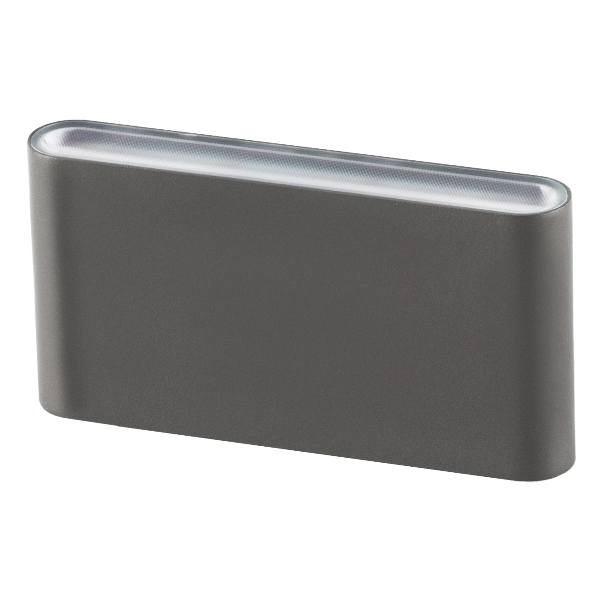 Die 2-flammige LED Wandleuchte ist komplett aus Aluminium im Druckgussverfahren gefertigt. Dank der gegebenen Schutzart kann diese sowohl im Innen-, als auch Außenbereich zum Einsatz gebracht werden. Somit lassen sich nicht nur Hausfassaden gekonnt in Szene setzen, sondern z. B. auch Treppenhäuser, bzw. Treppenauf-/abgänge perfekt ausleuchten und natürlich vieles mehr. Mittels Schalter kann eine von drei möglichen Farbtemperaturen eingestellt werden. Die möglichen Farbtemperaturen und daraus resultierenden Lumen sind: 3000K (2x475lm), 4000K (2x530lm) und 5700K (2x500lm). Die Gehäusefarbe entspricht RAL7016. Die Leuchte kann auch über eine Zentralbatterie betrieben werden, mit einer Eingangsspannung von 176-300V/DC.