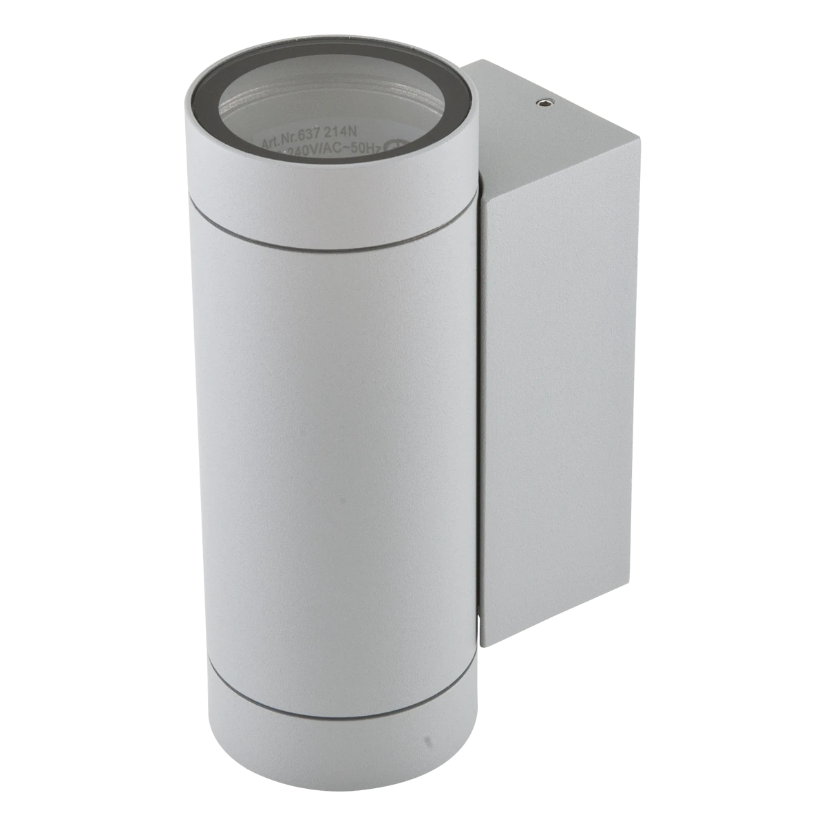 Hochwertige Leuchte, gefertigt im Druckgussverfahren für den Außenbereich oder Innenbereich. Da es sich um ein Up- and downlight handelt, muss bei der Montage nicht auf die Ausrichtung geachtet werden. Auch bei der Wahl des Leuchtmittels sind auf Grund der Hochvoltfassungen nahezu keine Grenzen gesetzt, jedoch dürfen nur Leuchtmittel bis max. 11W verwendet werden. Sockelmaß: 123mm x 55mm.