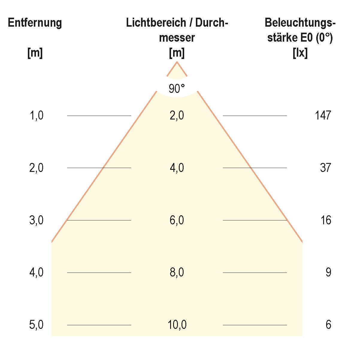 | Ausstrahlungswinkel (Bereich) | extrem breitstrahlend >80° |