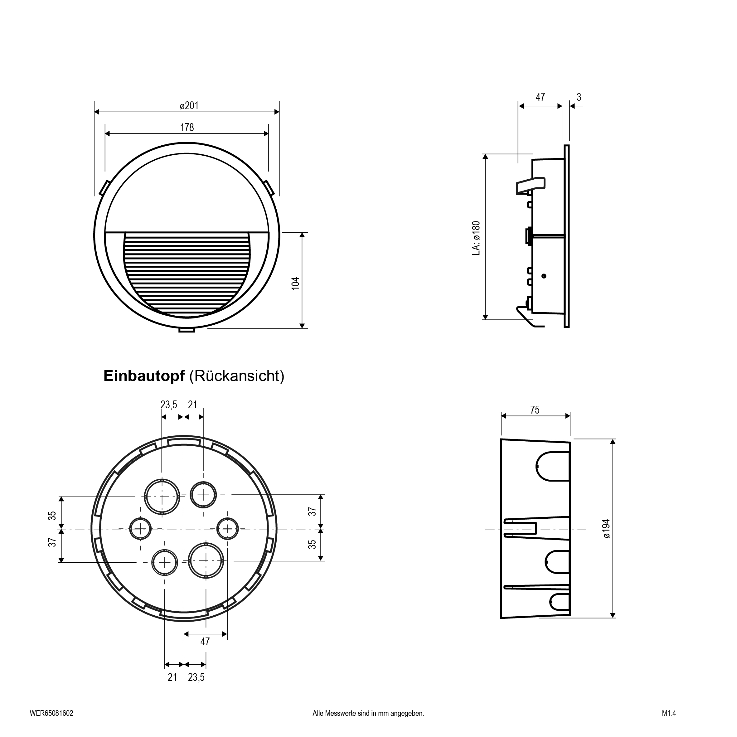 | Einbaudurchmesser – (min./max.) | 194 - 194 |