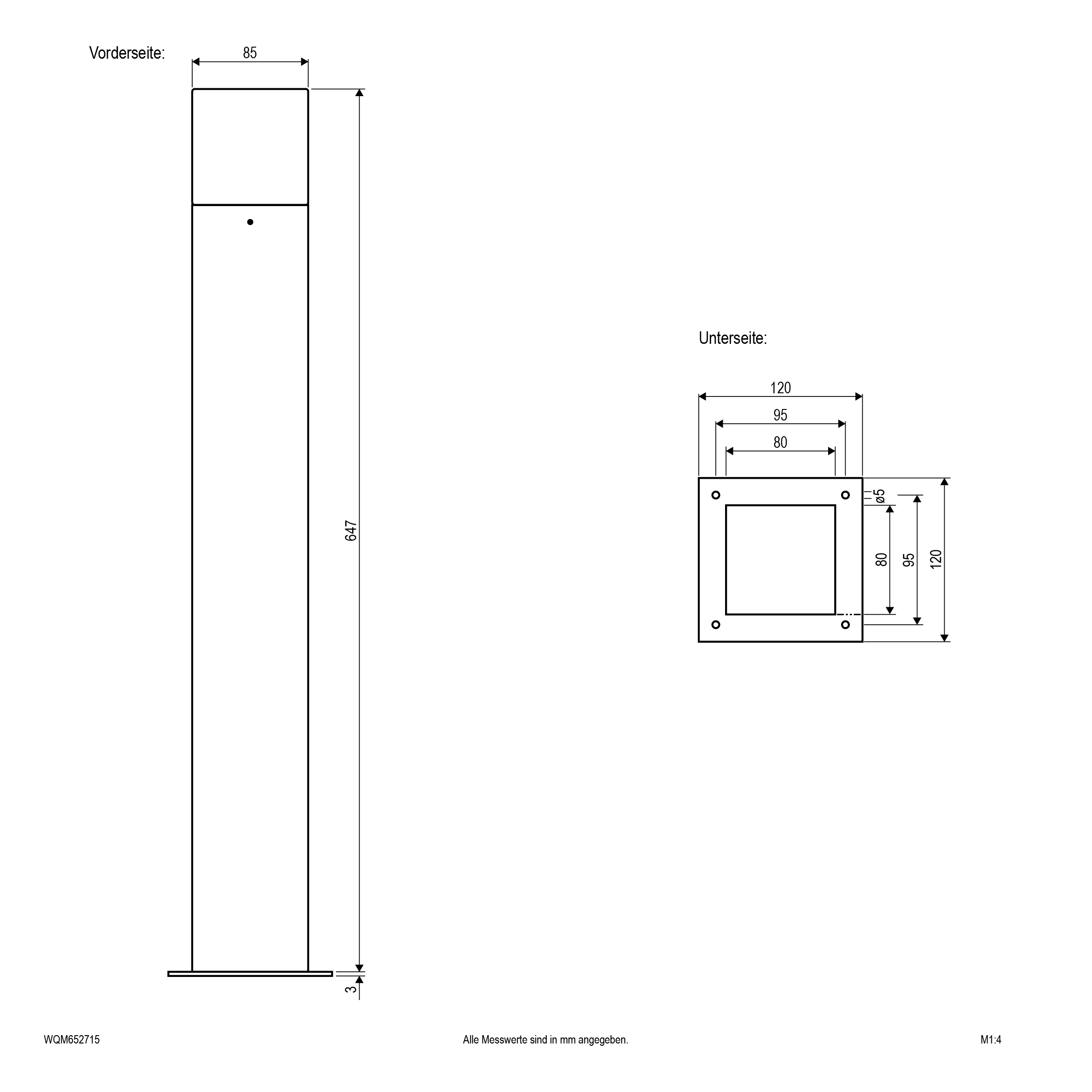 | Abmessung (LxBxH) | 85 x 85 x 650 mm |