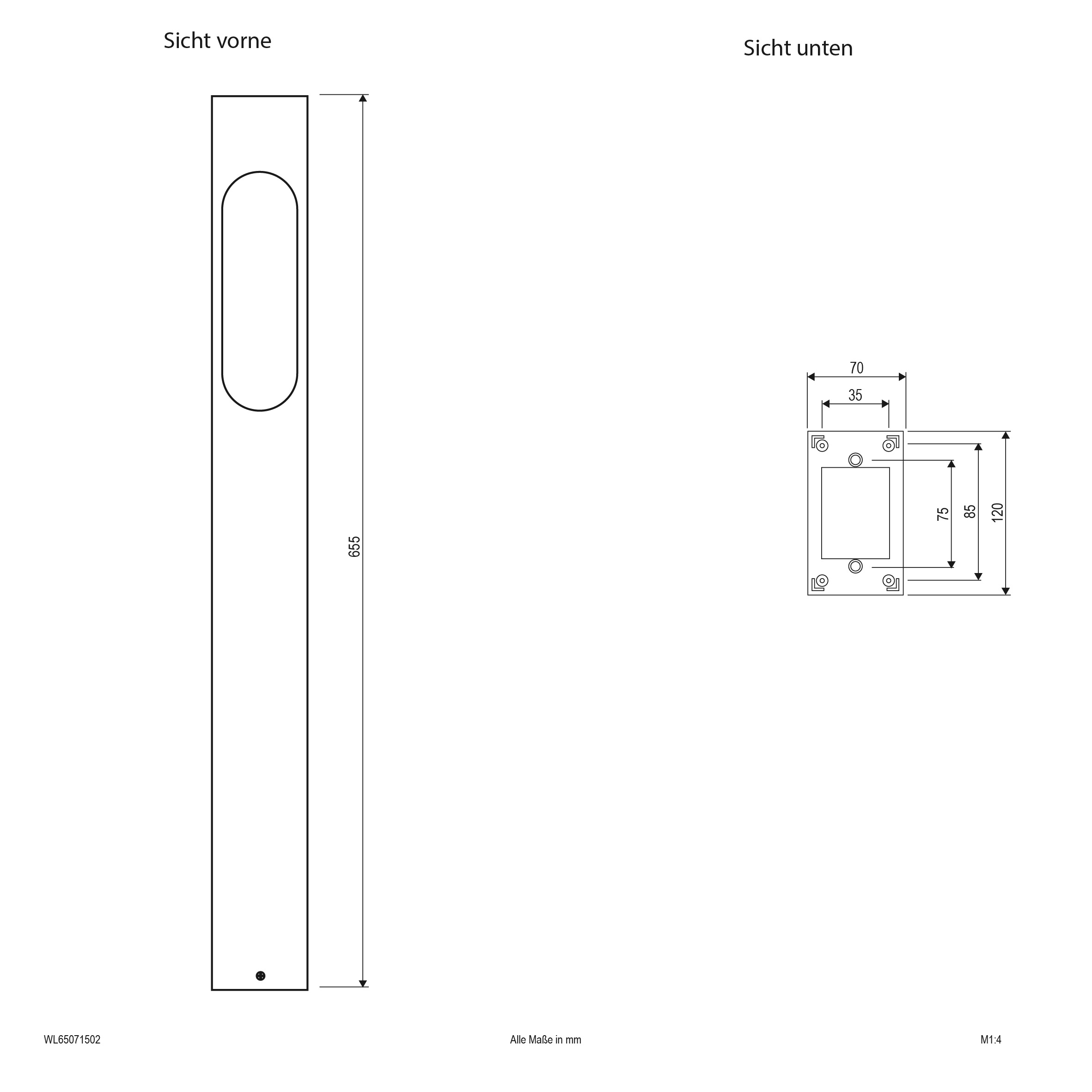 | Abmessung (LxBxH) | 70 x 120 x 655 mm |