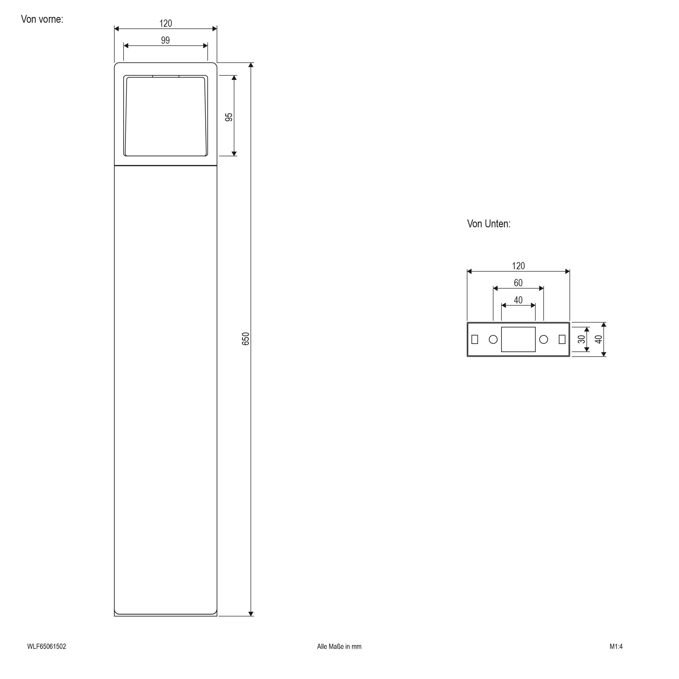 | Abmessung (LxBxH) | 120 x 40 x 650 mm |