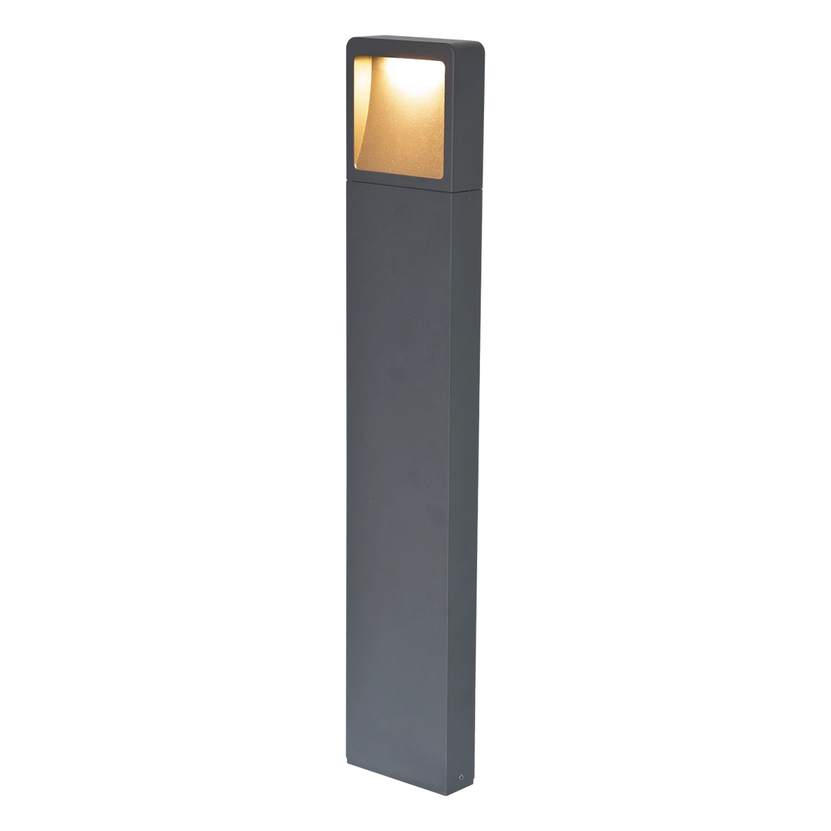Massive Wegeleuchte gefertigt aus Aluminium im Druckgussverfahren und pulverbeschichtet. Die Leuchte ist perfekt zur Beleuchtung von Gehwegen, als Randbeleuchtung für Beete und vieles mehr geeignet. Da der Lichtaustritt auf den schrägen Reflektor trifft entsteht bei der Leuchte kein Blendeffekt.